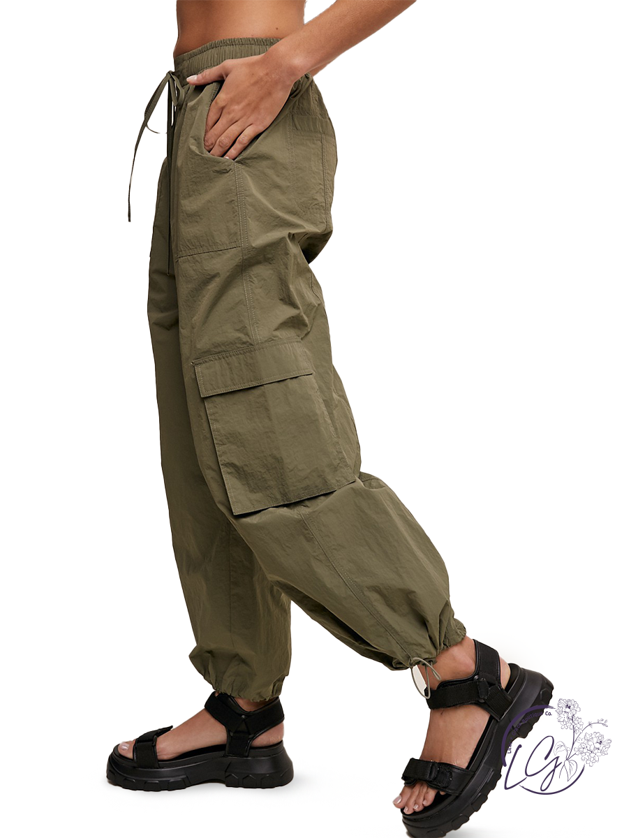 The Cityscape Cargo Pants are a contemporary and functional interpretation of traditional cargo pants, blending style with utility seamlessly. Featuring a high-rise waistline, these pants offer a flattering fit and elongated silhouette. Crafted from lightweight and durable parachute fabric, they provide comfort and breathability, making them ideal for active wear. The cargo-style pockets add a touch of utility and offer ample storage space for your essentials, while the relaxed fit and tapered legs provide ease of movement. With their versatile design, these pants can be dressed up with a blouse and heels for a chic urban look or paired with sneakers and a casual top for a laid-back vibe.