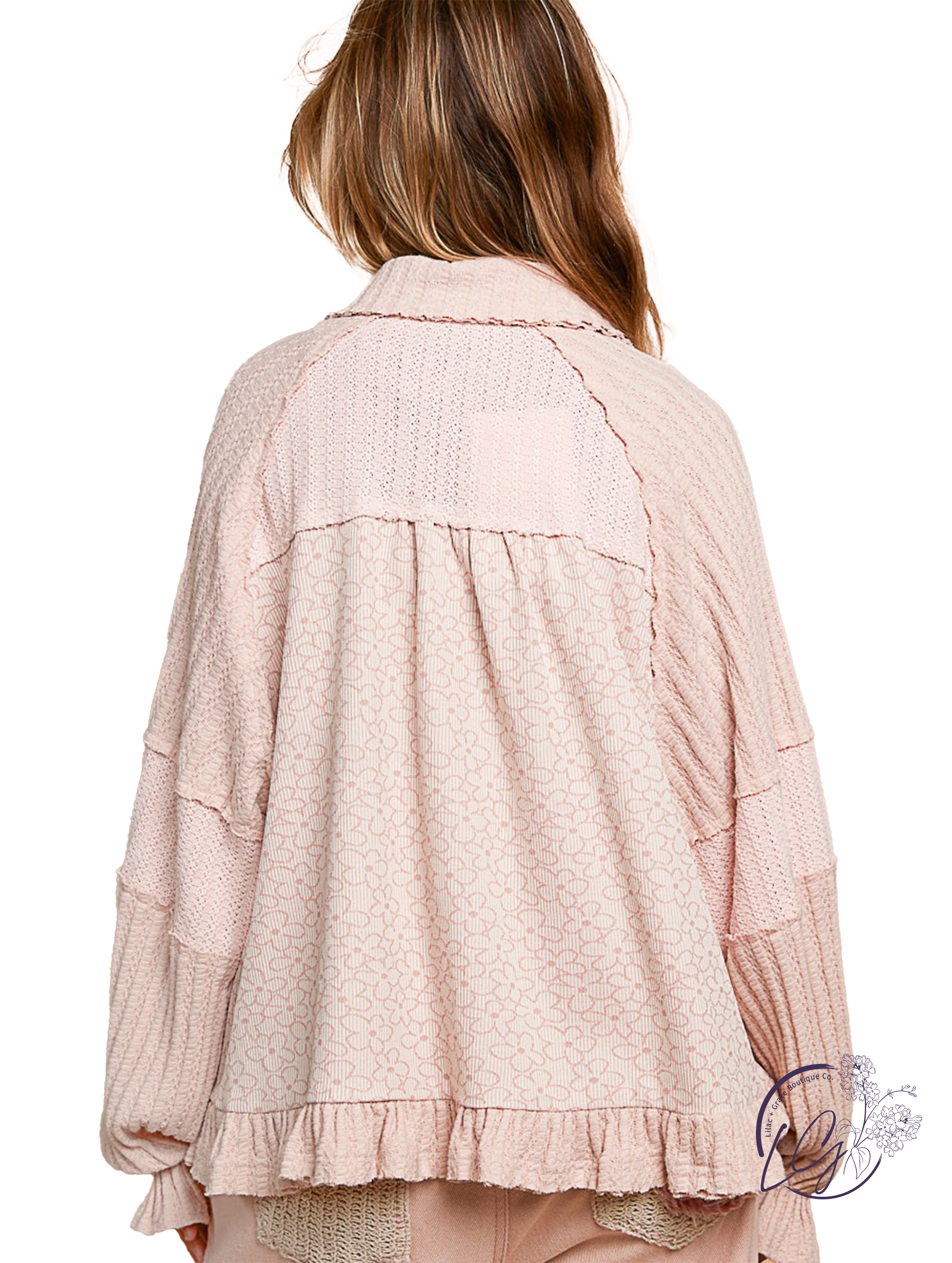 Introducing the Hushed Moments Knit Shirt - the perfect blend of comfort and elegance. Designed with a roomy fit and textured knit, this shirt offers both style and comfort. The contrast lace paneling and ruffle hem add a touch of sophistication to any outfit. Experience hushed moments in this must-have shirt.