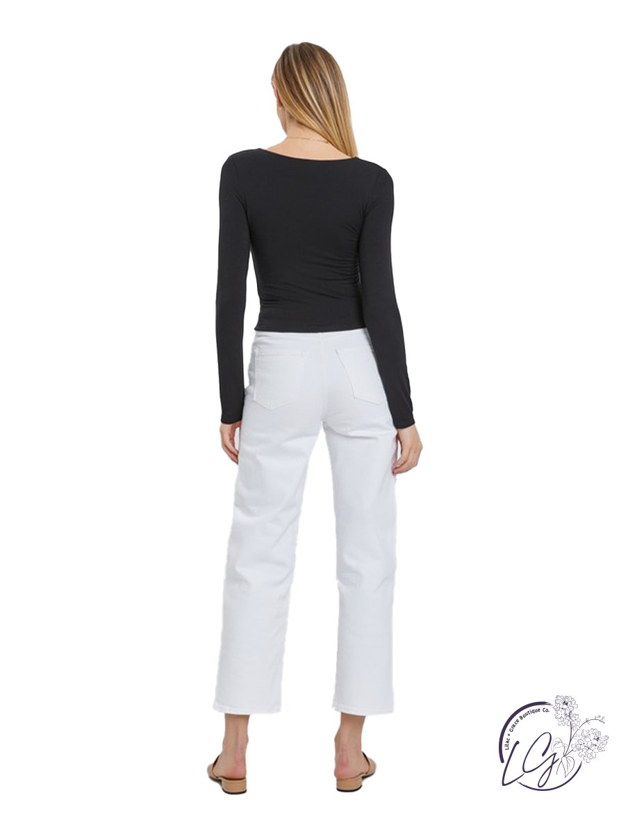 The "I Love It Cropped Long Sleeve" is a versatile and stylish basic long sleeve cropped top designed to elevate your wardrobe. With its round neck and stretch-fit fabric, this top contours to the body, providing a flattering and comfortable silhouette. Its cropped length adds a trendy touch, making it an ideal choice to pair with any bottom, from high-waisted jeans to skirts or shorts.