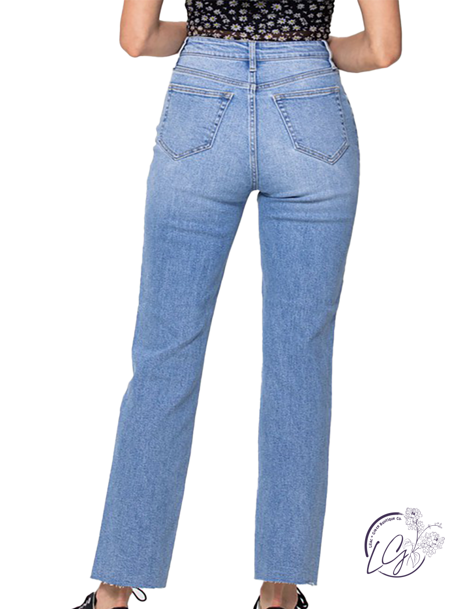 High-Rise Straight Jean with Inseam Slit