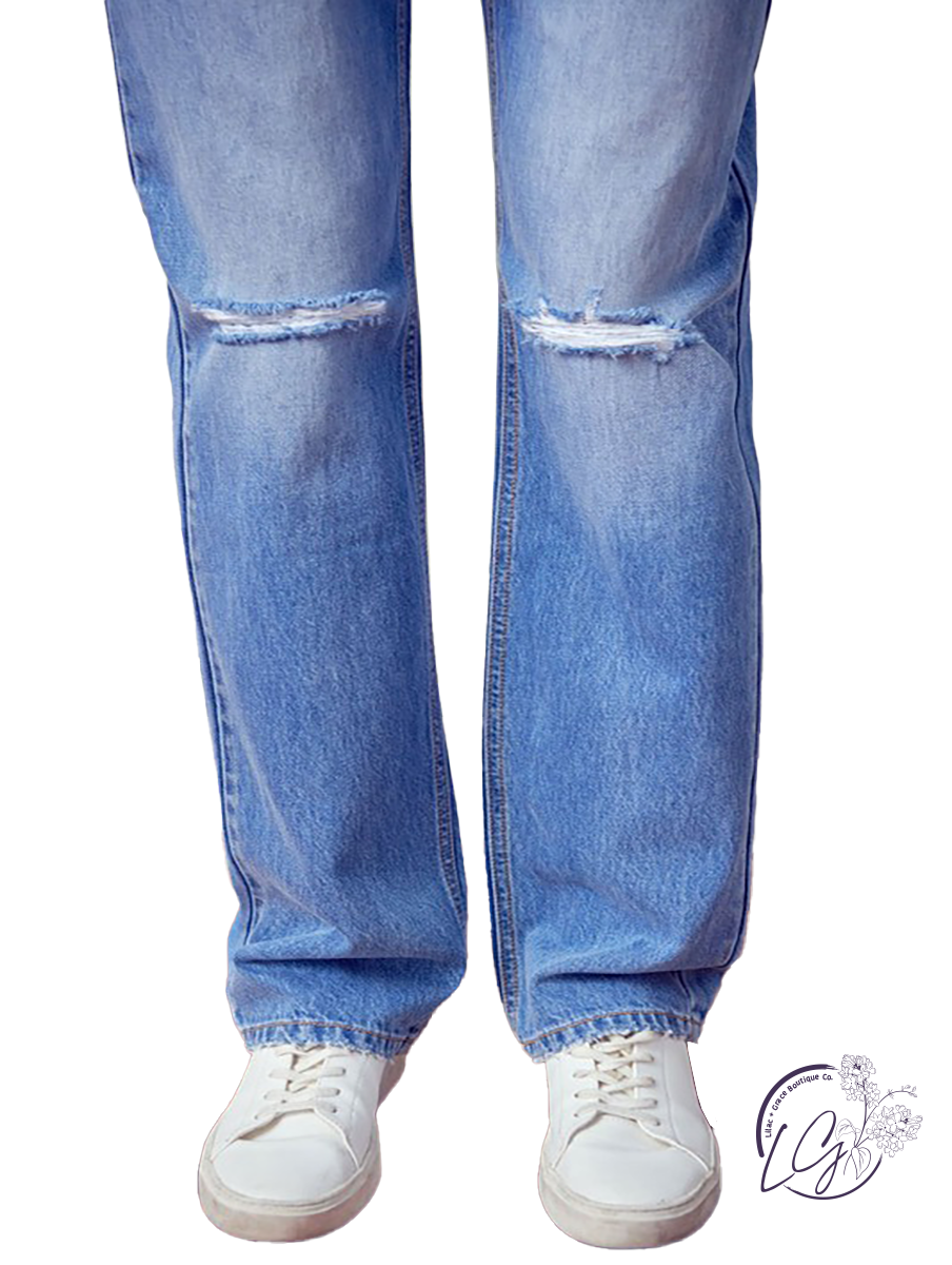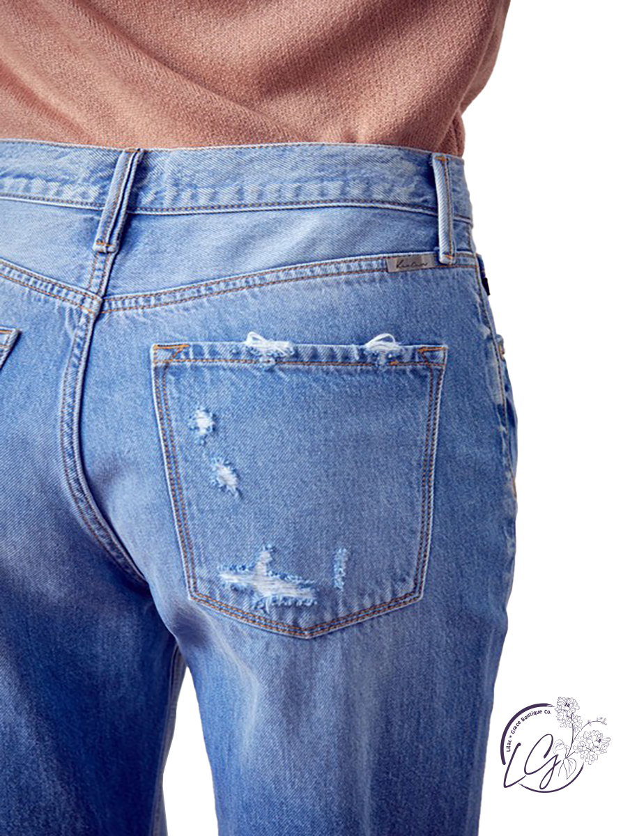 Features: 5 Pocket Style, Hidden Button Fly, Distressed Knee