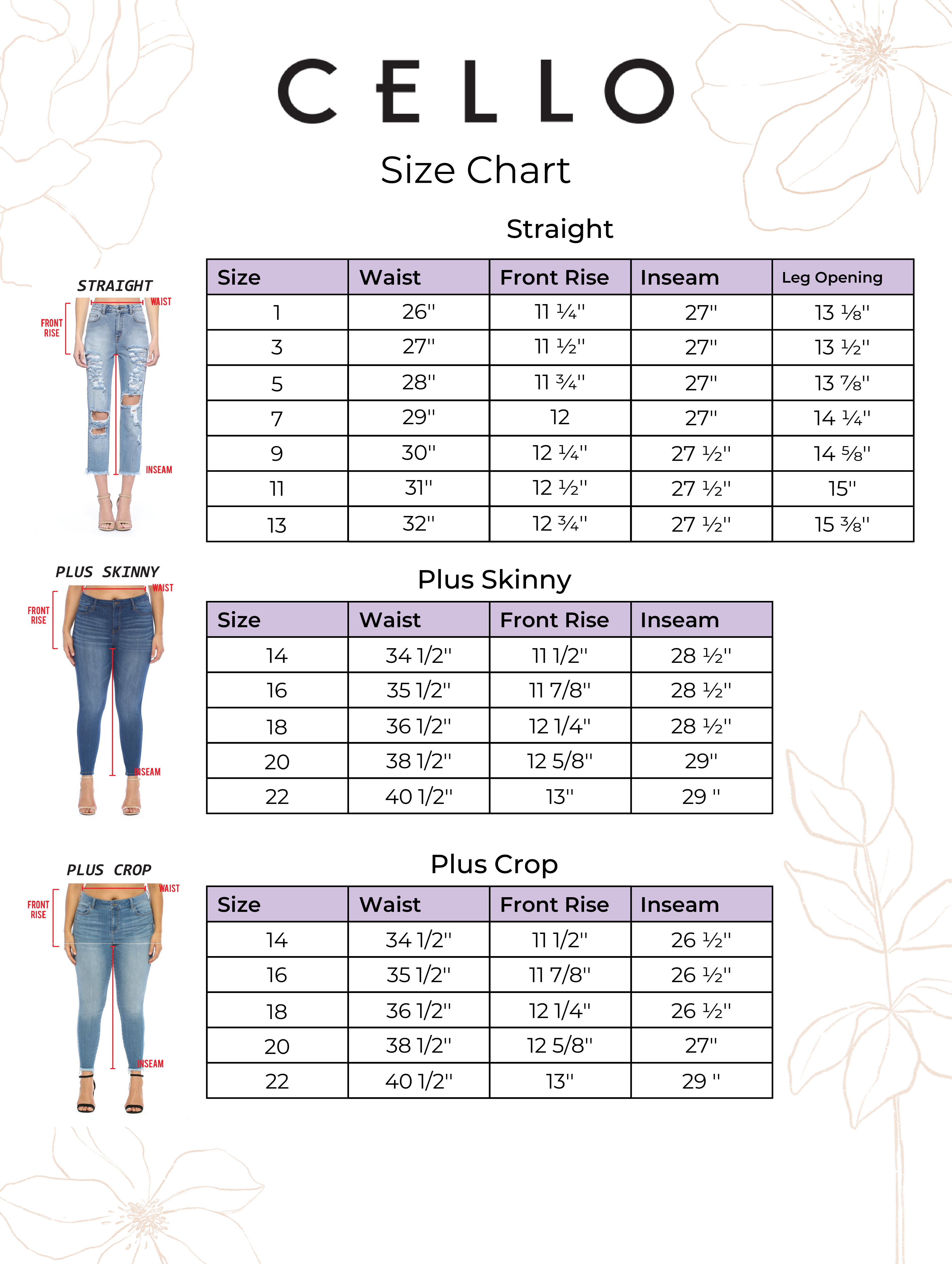 Shopping for denim online shouldn’t be intimidating! With our size chart and guidance, we’ll help you find the perfect fit with confidence.