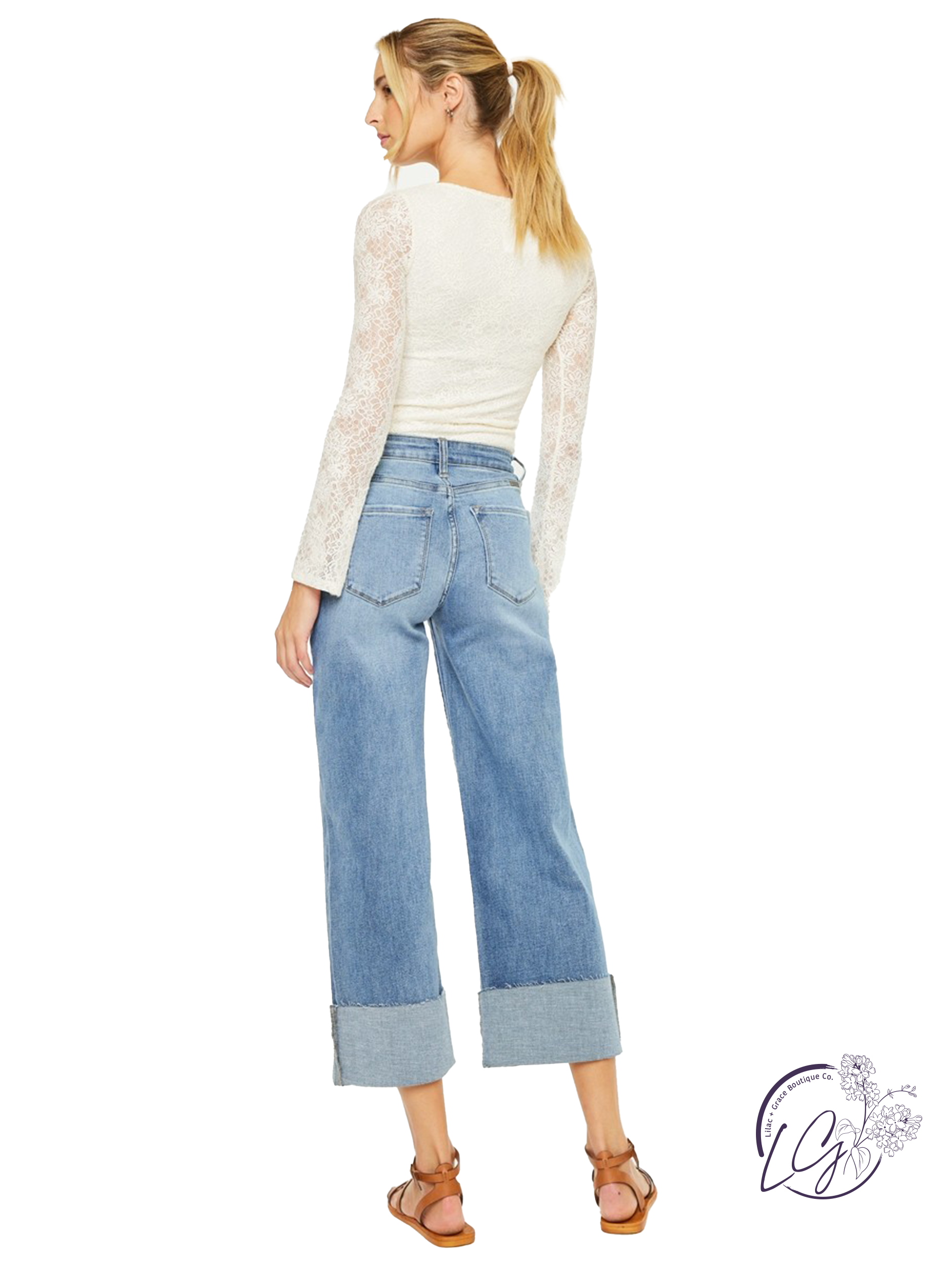 Estella High-Rise Crop Wide Leg Jeans by Kan Can