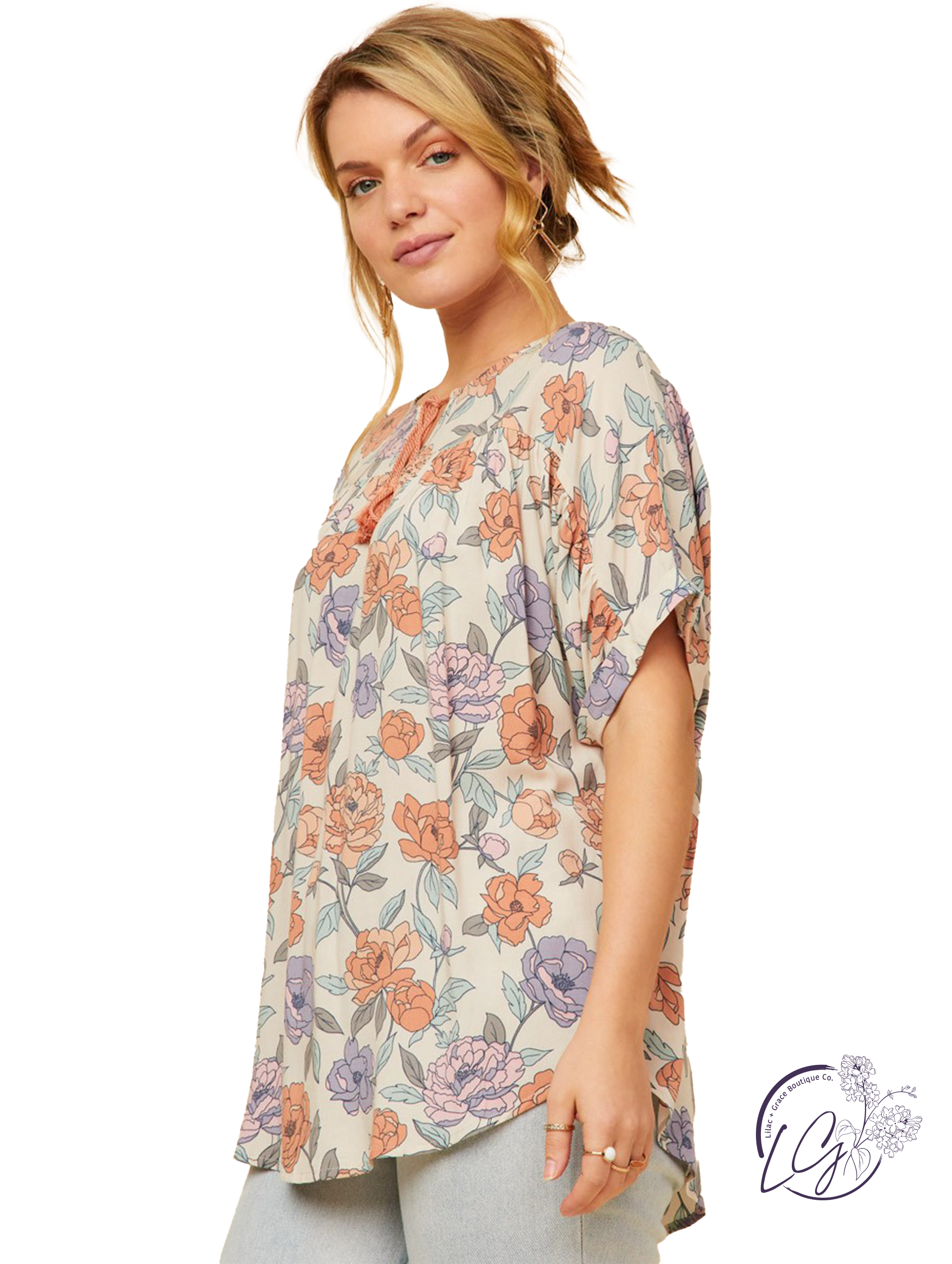 Experience the feeling of romance in our Laugh Is Home Dolman Top. Made with a beautiful floral woven fabric, this top features a round cut neckline with a delicate tassel tie and stylish dolman sleeves. Indulge in the elegant and feminine touch this top adds to any outfit.