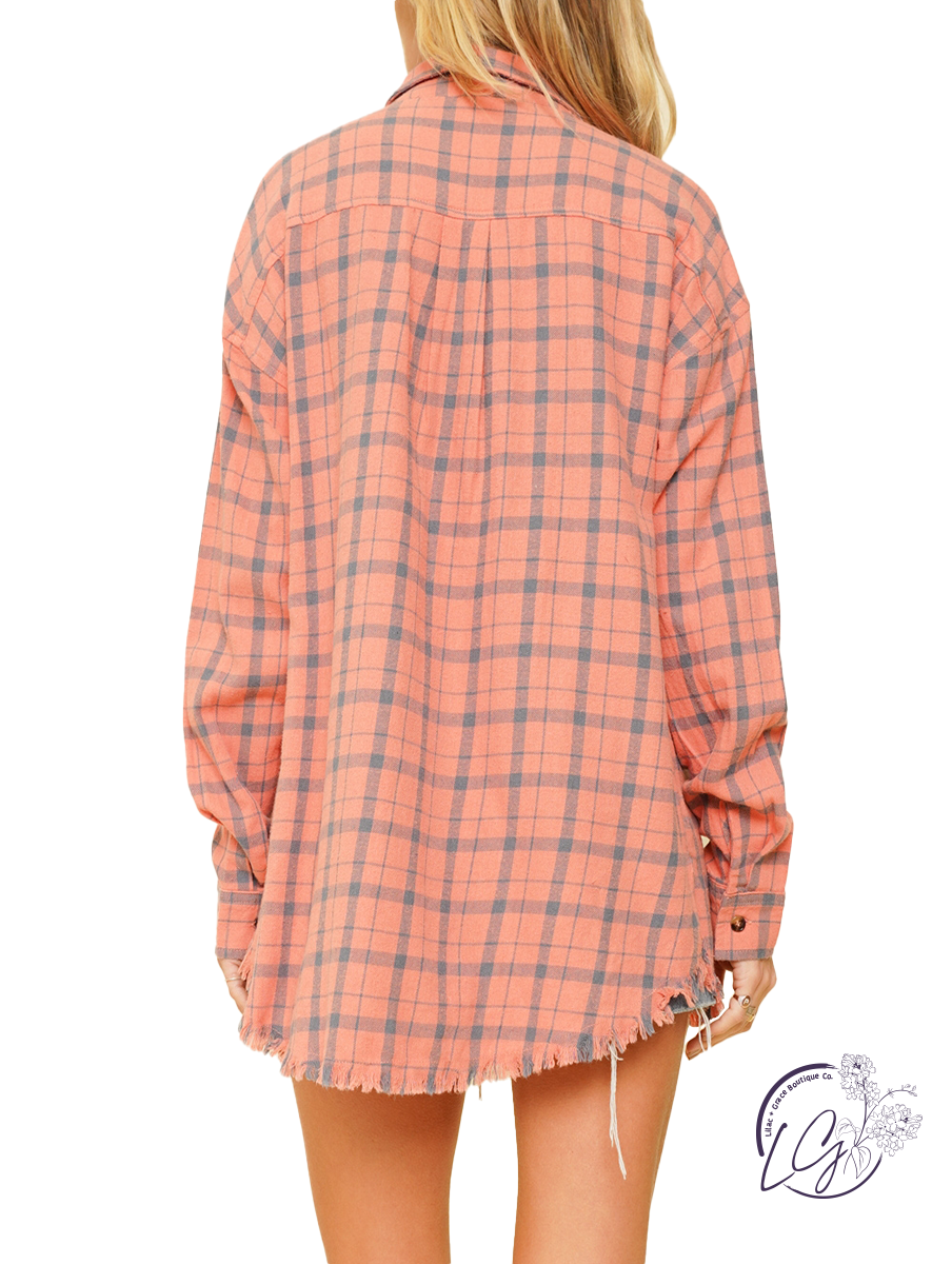 Plaid Fringe HI-Low Oversized Button Down Shirt