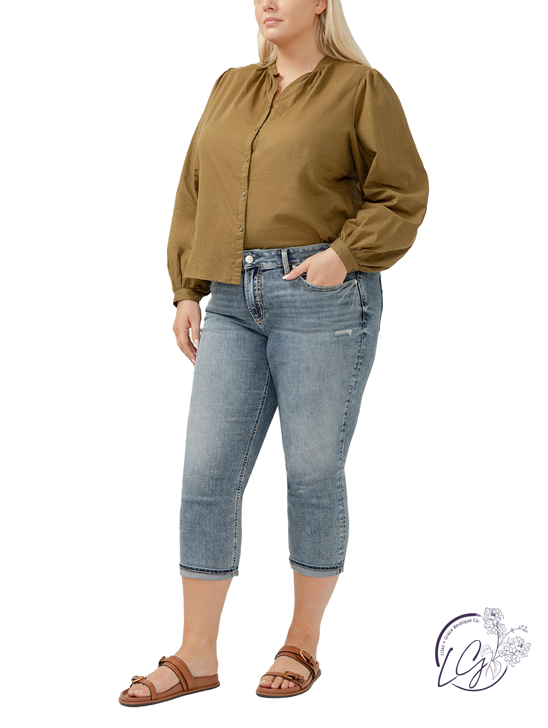 Curvy Renata Mid-Rise Luxe Stretch Capri by Silver Jeans