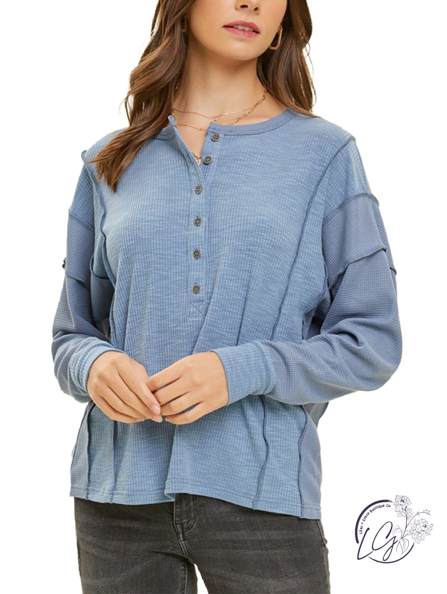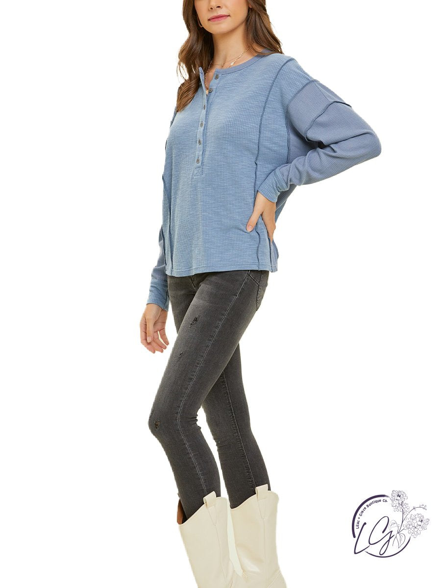 The "Mellow Mosaic Oversized Layering Top" is a versatile and cozy wardrobe essential designed for both comfort and style. This oversized henley top is crafted from a meticulously curated mixed knit fabric that blends various textures, creating a harmonious mosaic of patterns and weaves.
