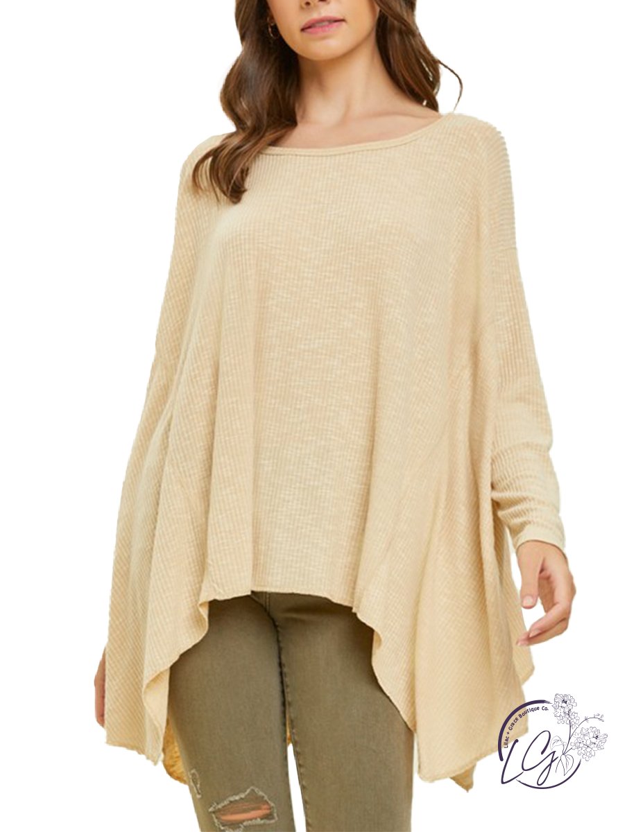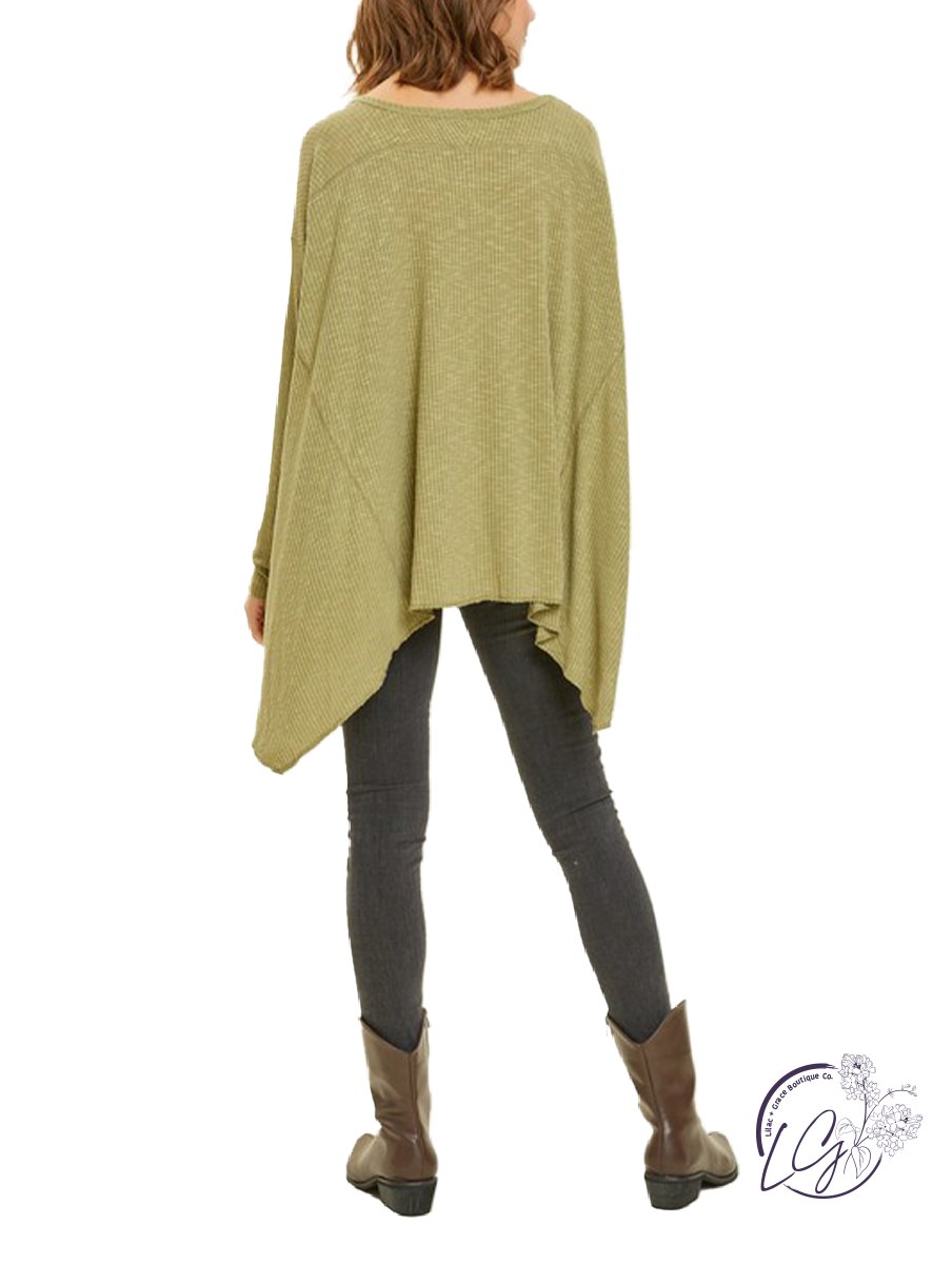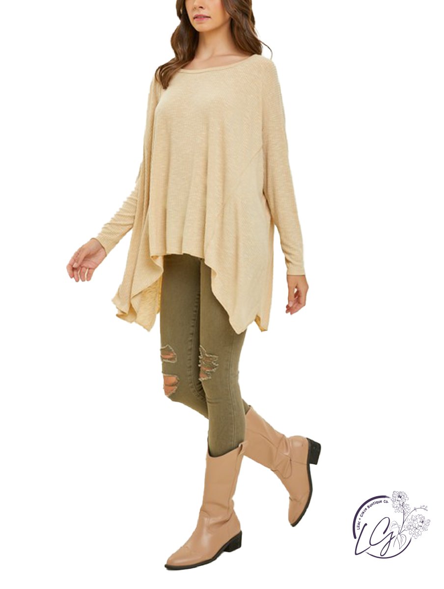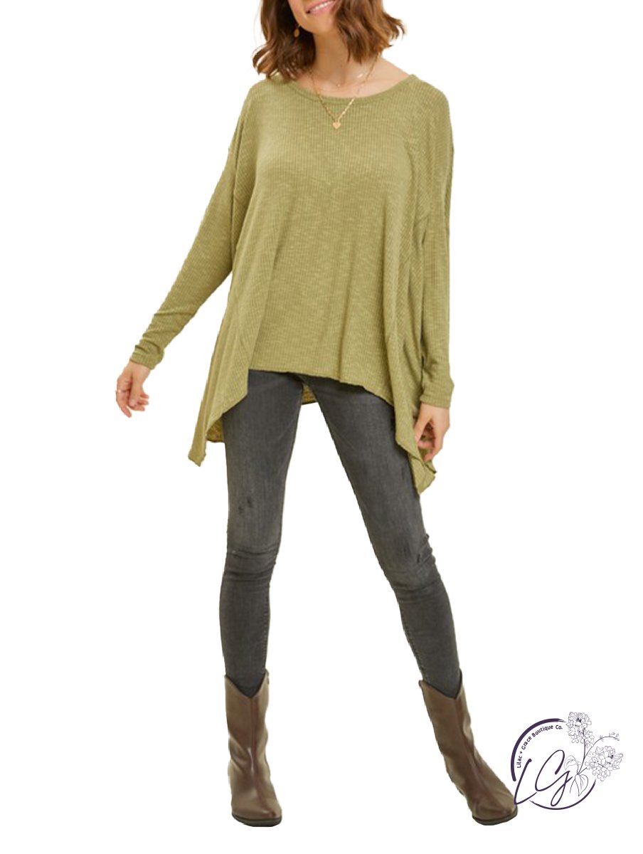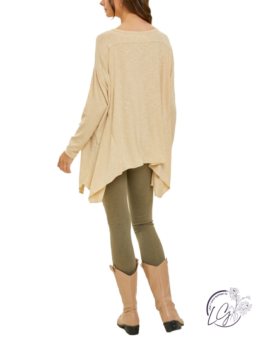 Introducing the "Mellow Mosaic Rib Layer Top," a luxurious and oversized addition to your wardrobe that seamlessly combines comfort with contemporary style. Crafted from super-soft ribbed fabric, this layering top is designed to cocoon you in a cloud of coziness.