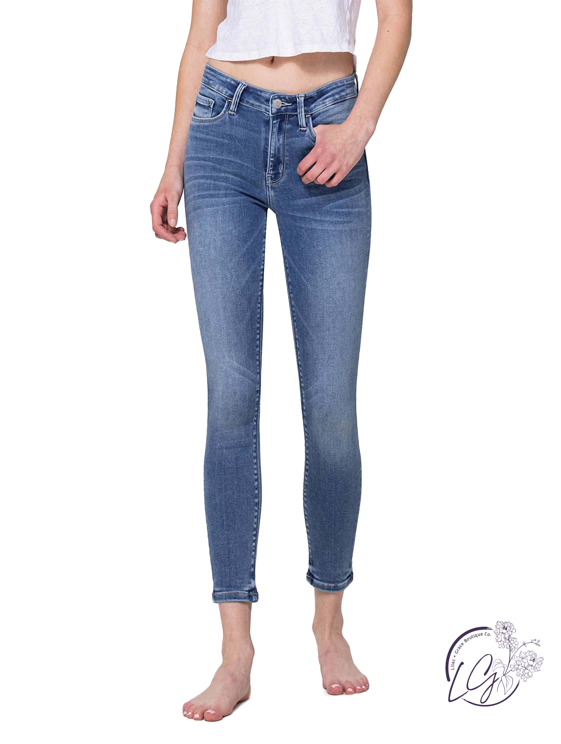 Experience all-day comfort in these Beverly mid-rise super soft crop skinny jeans. Crafted with stretch denim and a super soft fabric, these jeans hug your curves in all the right places. The mid-rise waist adds a flattering touch, while the cropped length and skinny fit keep you on-trend. (No more discomfort in stiff jeans!)