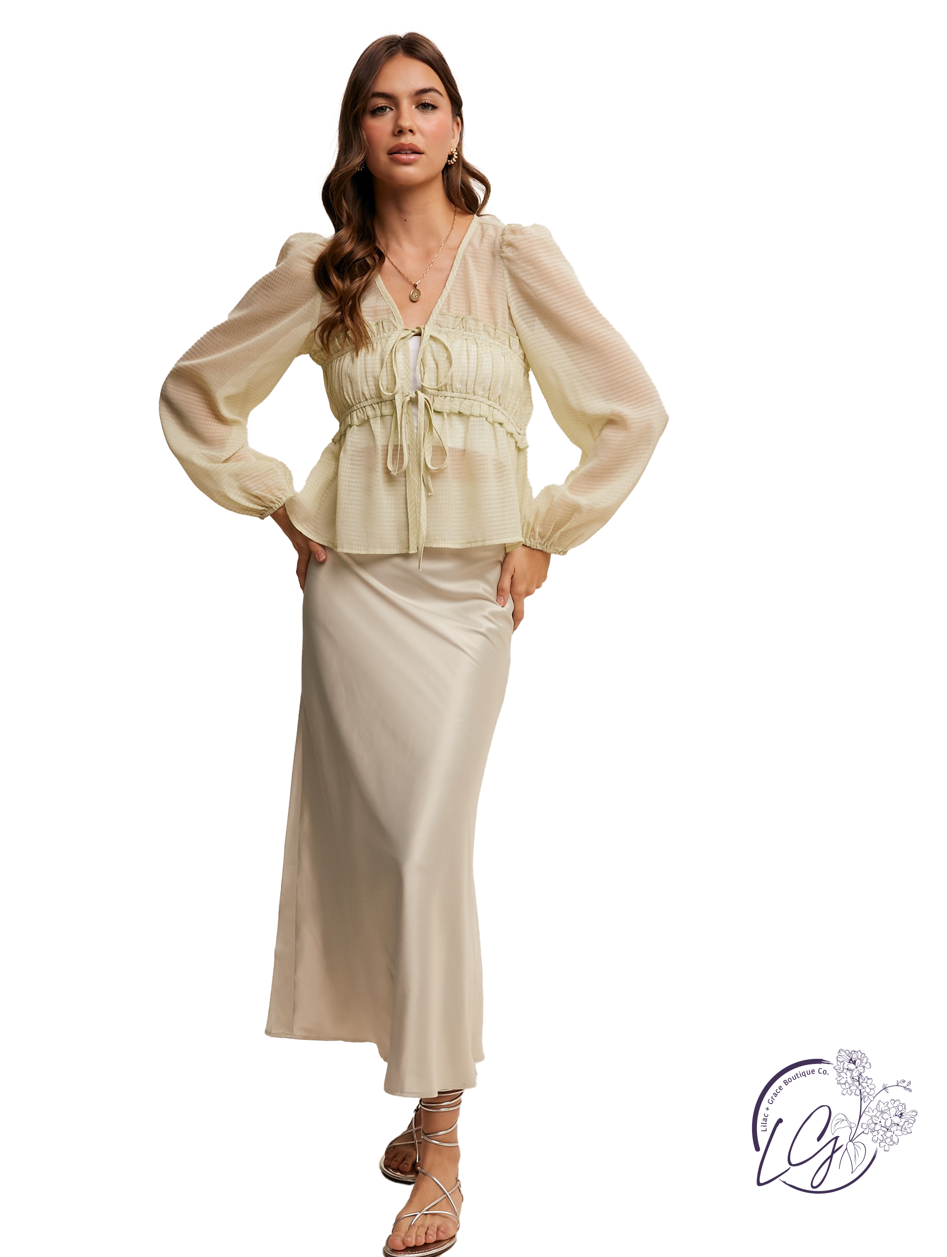 Effortlessly chic and timeless, this satin midi slip skirt exudes elegance with every step. Its smooth satin finish catches the light beautifully, while delicate details add a touch of charm. Whether styled for day or night, this piece is a must-have for refined, versatile fashion.