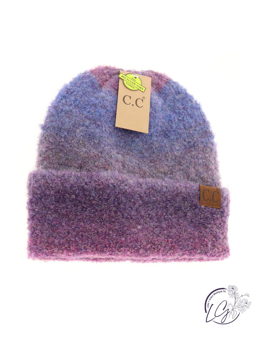 Multi-Colored Slouchy Mohair Cuffed CC Beanie