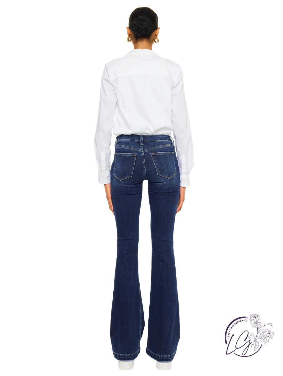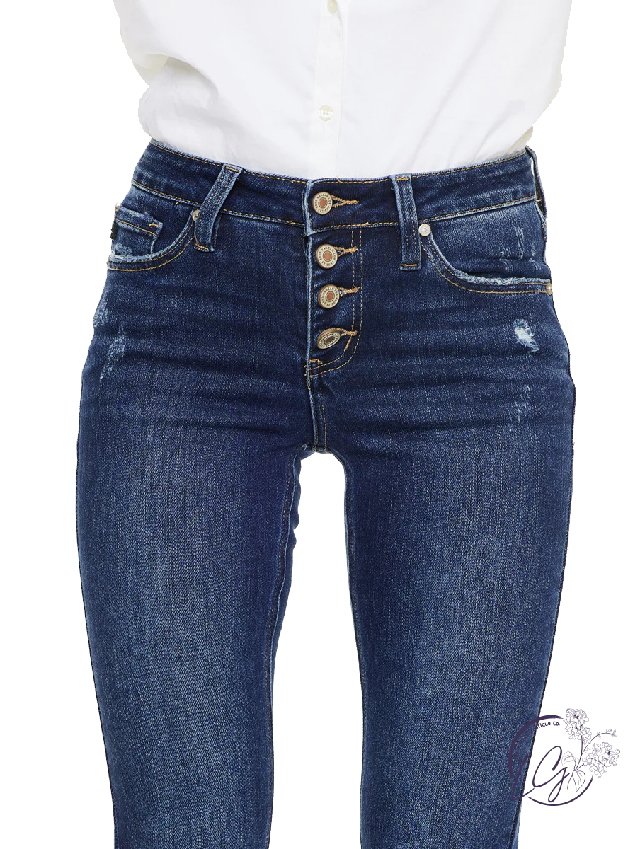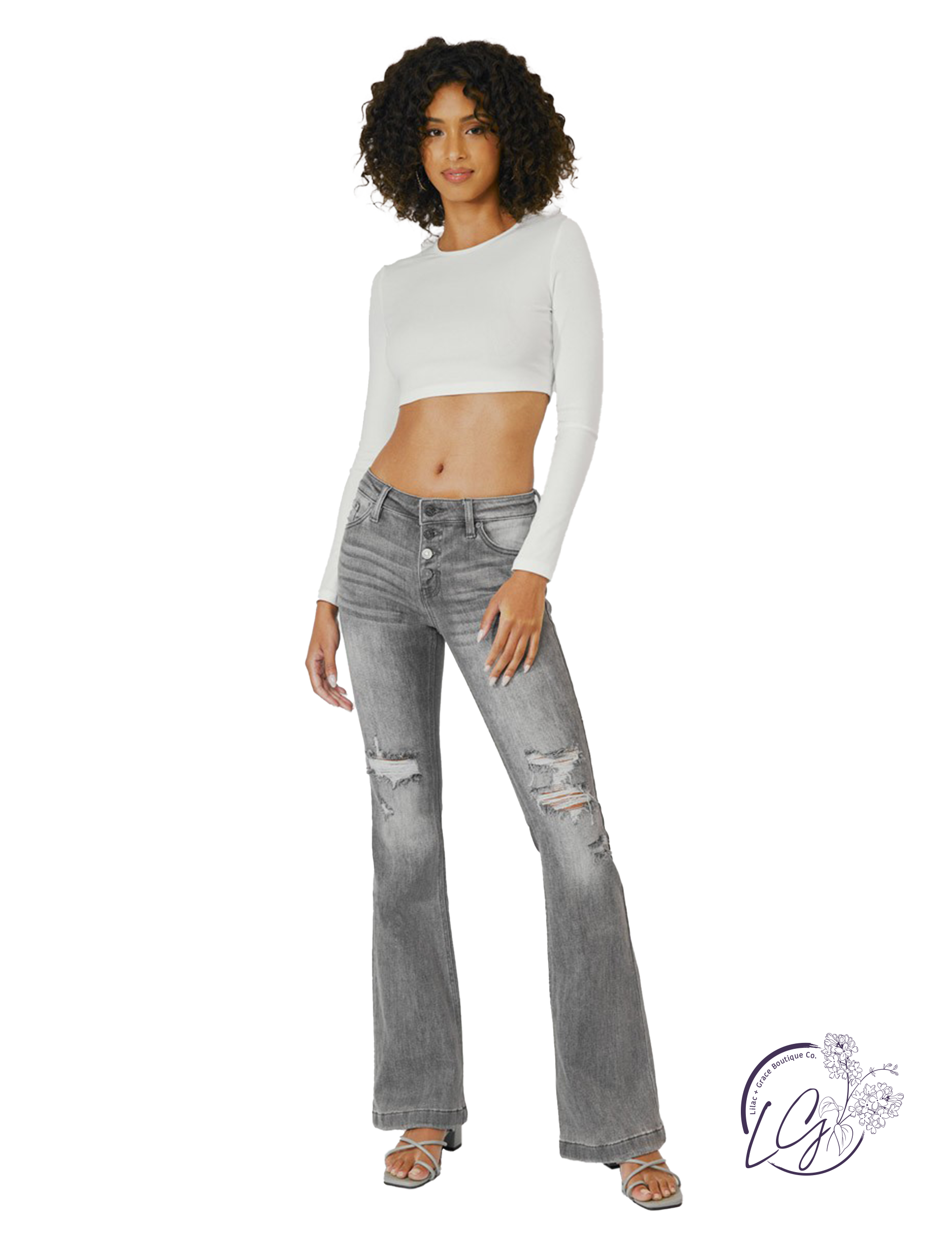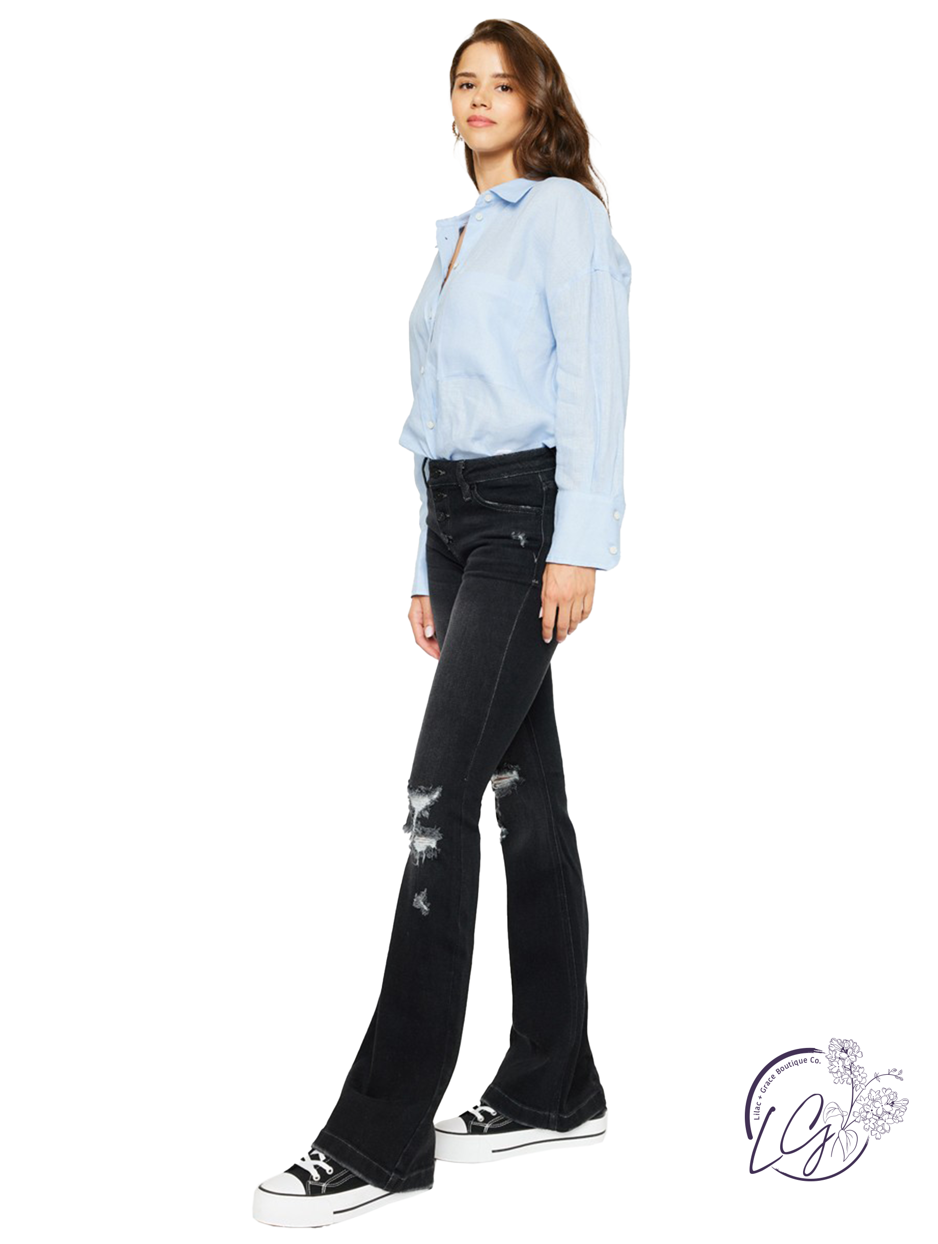 Nola Mid-Rise Button Fly Distressed Flare Jean by KanCan