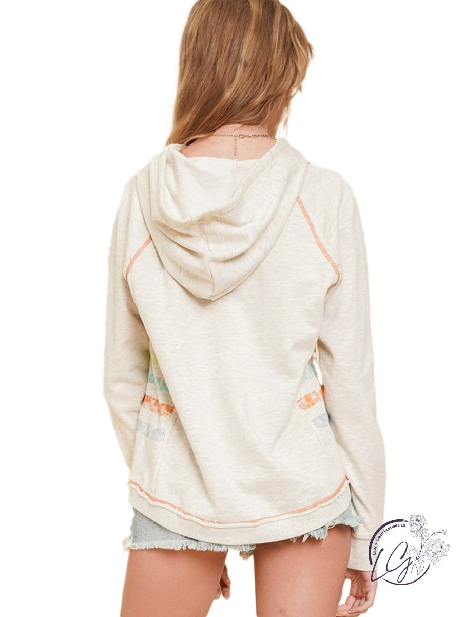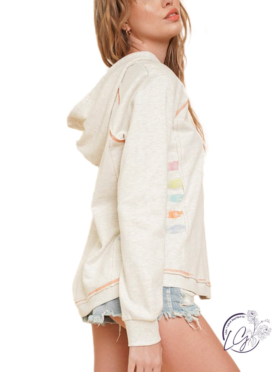 Pastel stripe screen french terry hoodie.