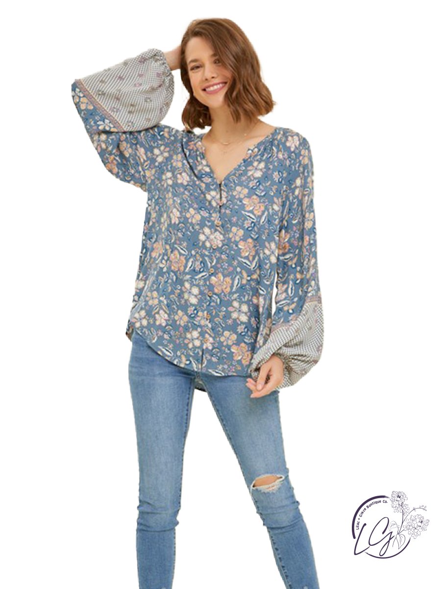 Introducing our "Botanical Bliss Button-Up Peasant Top" — a captivating blend of bohemian charm and floral elegance. This delightful blouse boasts a round split neck that adds a touch of allure, allowing you to showcase your style with ease.