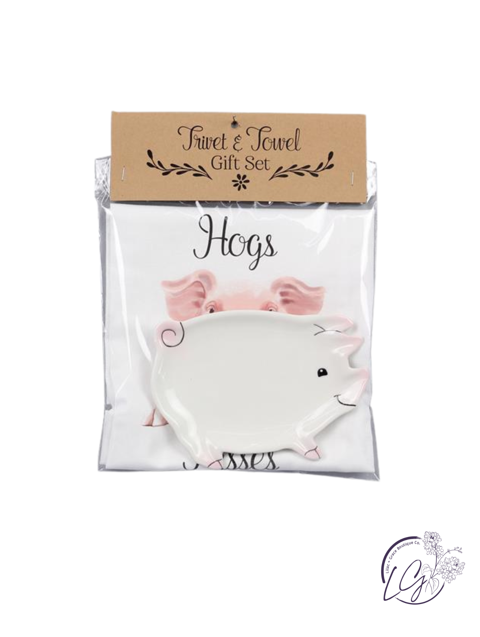 - Fabric Pig Dish Towel with Ceramic Soap Dish Set