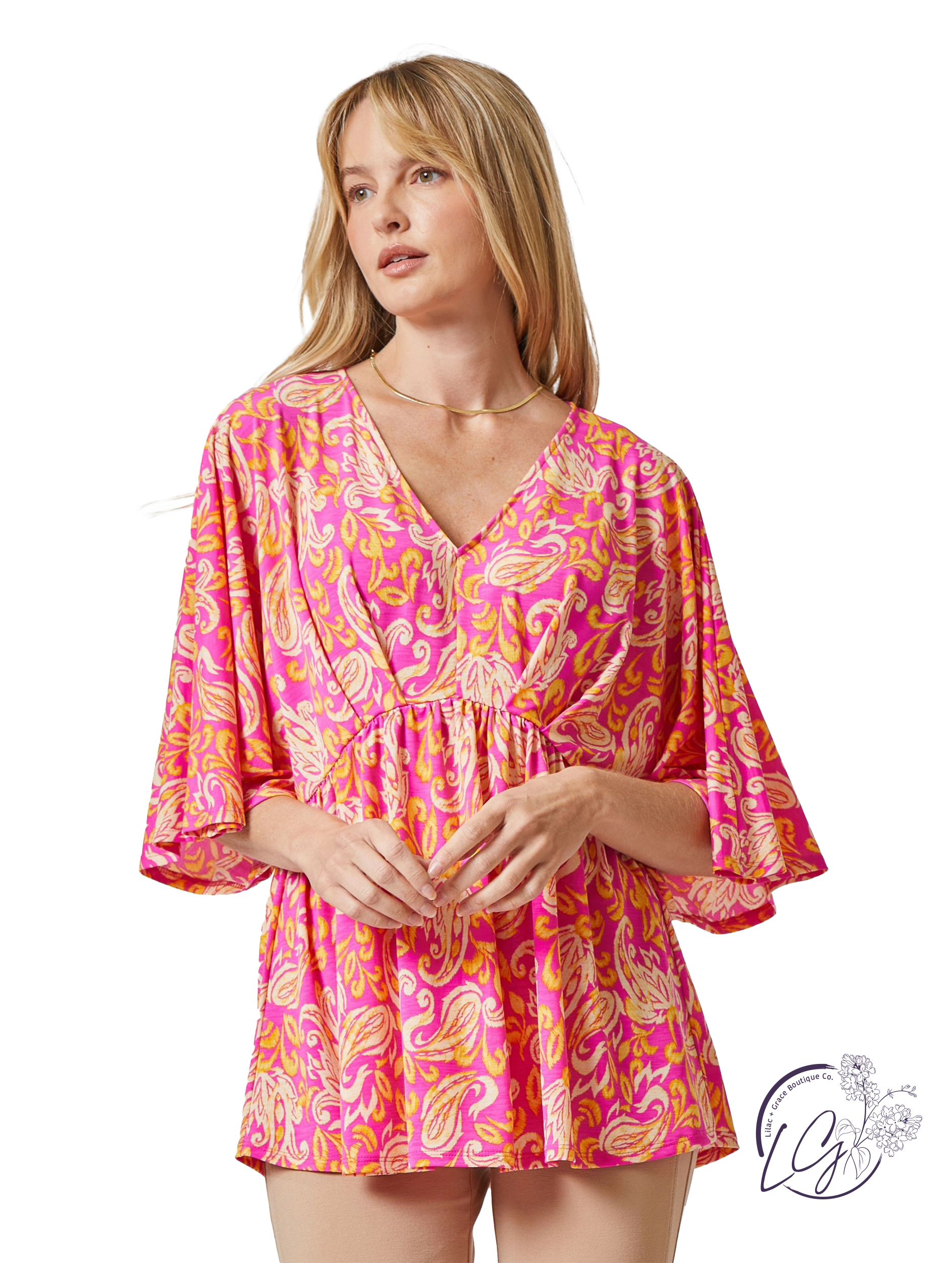 Fulfill your dreams with our Pink Dolman Sleeves Dreamer Top! Our dreamer top boasts a flattering fit with a v-neckline, pleating details, and dolman sleeves. Enjoy the convenience of wrinkle-free, travel-friendly material, while staying stylish and comfortable.