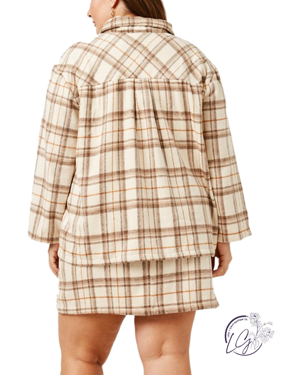 Crafted with the modern explorer in mind, the shacket features a classic plaid pattern that adds a timeless and rugged charm. The wide sleeves contribute to a relaxed and laid-back silhouette, allowing for ease of movement and a casual yet polished look.