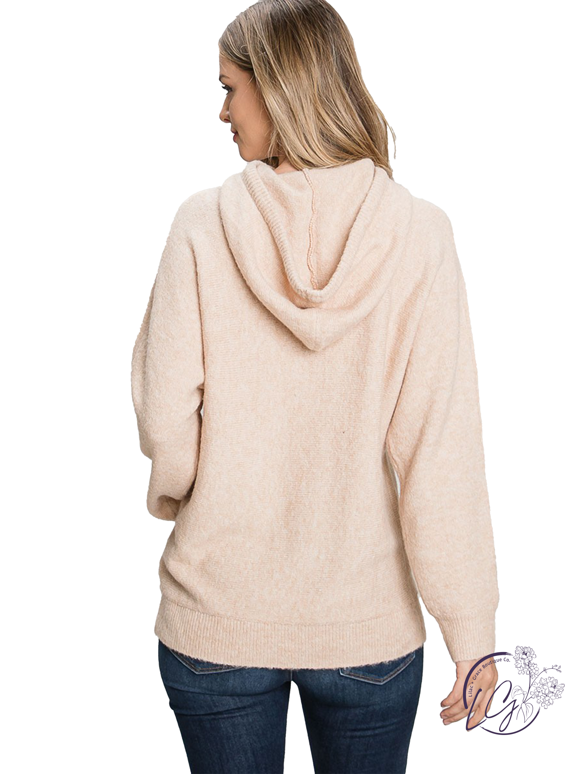Hoodie Sweater with long sleeves and drawstring. Features a slightly loose fit and dolman sleeves. This top is super soft and lightweight.