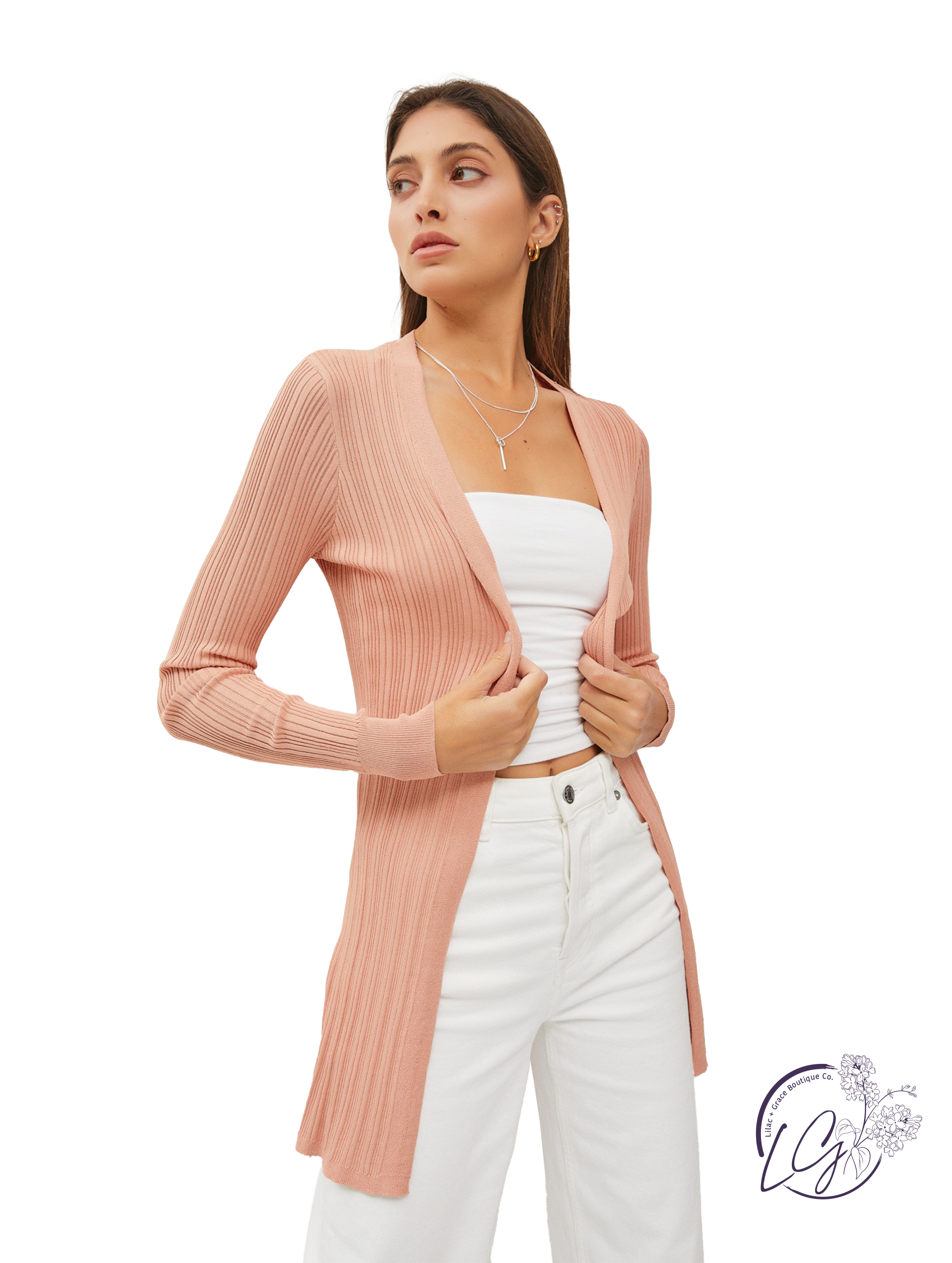 Elevate your wardrobe with our Ripple Effect Cardigan! This open front, ribbed knit design boasts back slits and a split hem, offering a breezy and lightweight fit. Featuring long sleeves and a below the hip length, this fitted cardigan brings effortless elegance to any outfit.