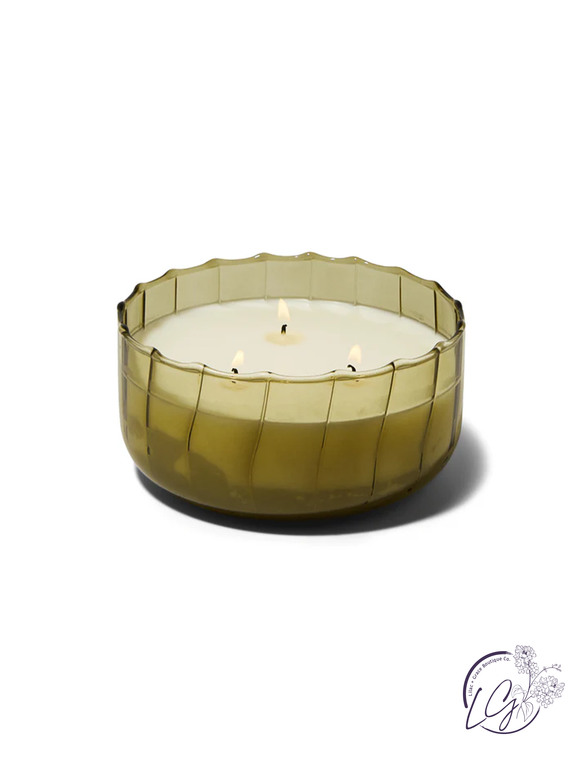 The Ripple - Secret Garden 12oz Candle is designed to elevate tablescapes. Bring a vintage touch to your next dinner party with the subtle and finely ribbed colored glass vessels.