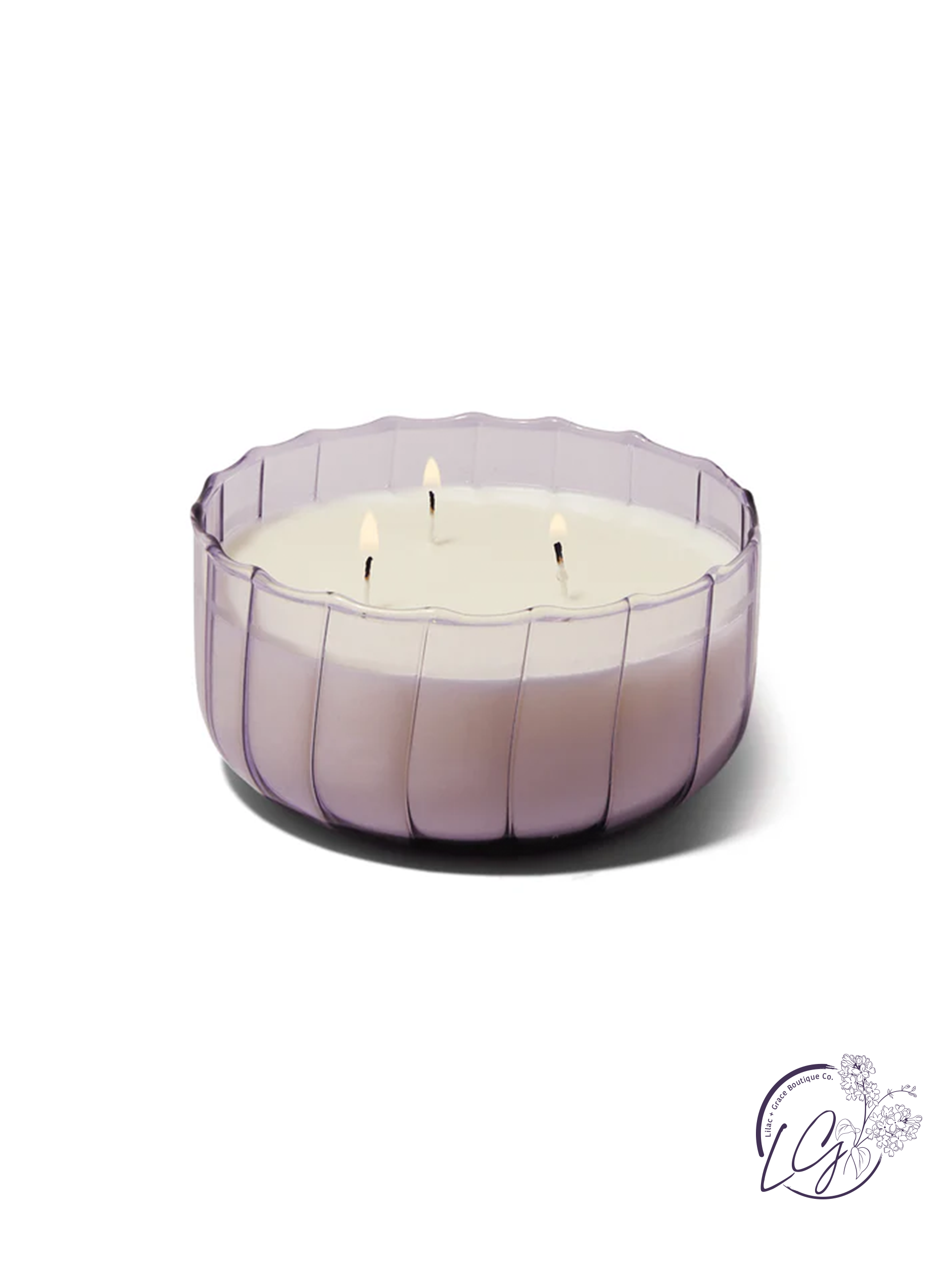 The Ripple - Salted Iris 12oz Candle is designed to elevate tablescapes. Bring a vintage touch to your next dinner party with the subtle and finely ribbed colored glass vessels.