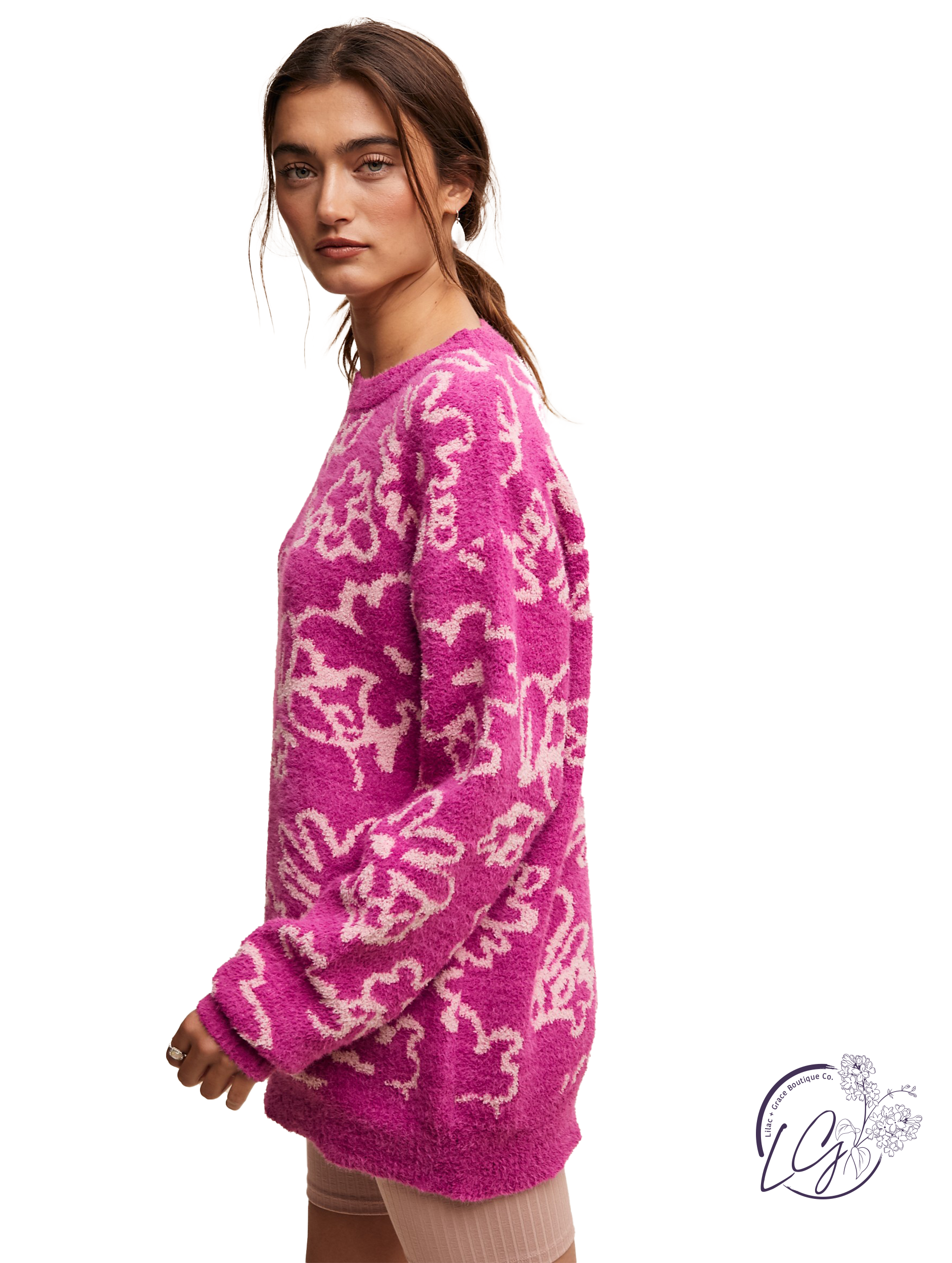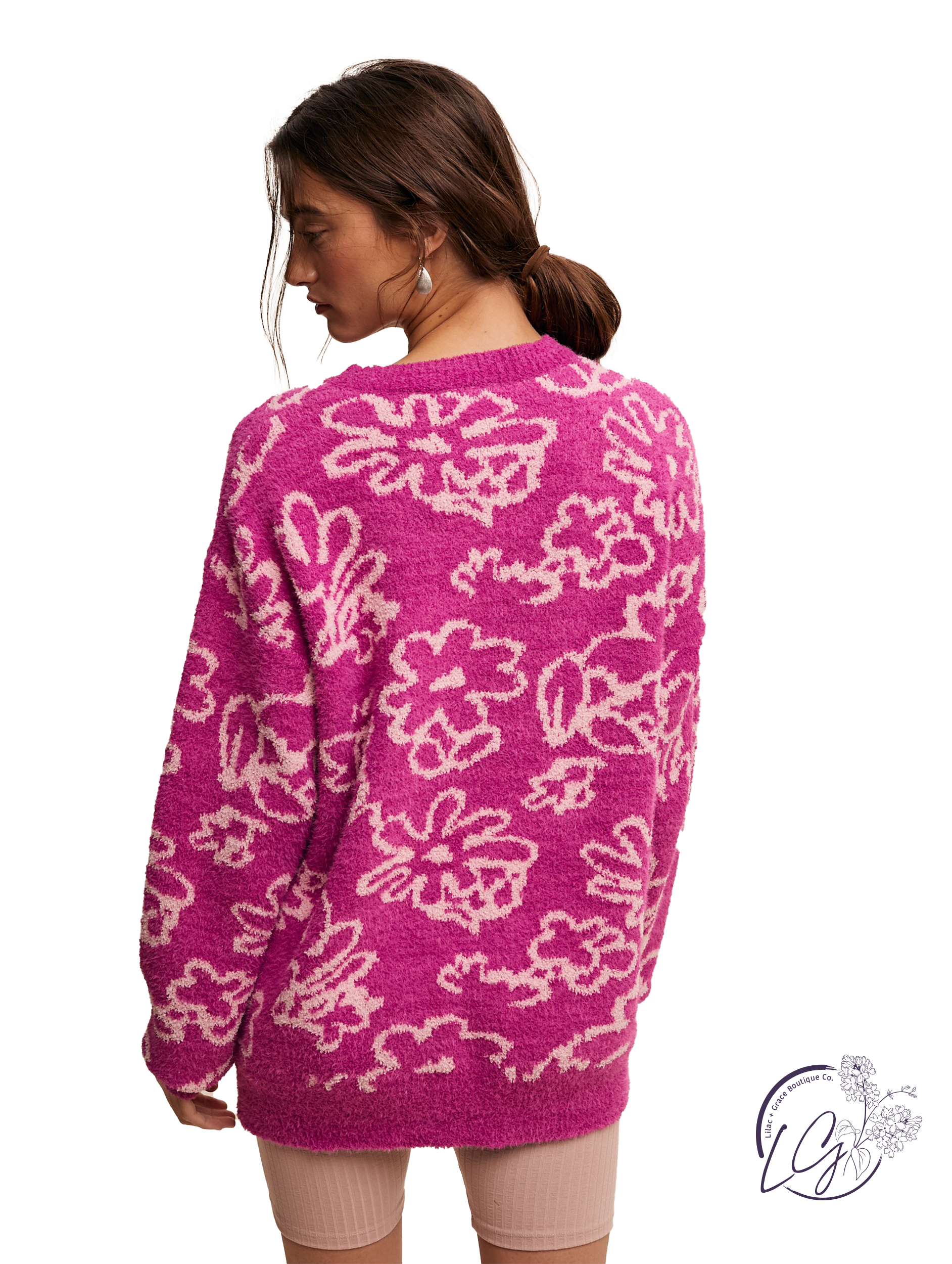 This hand-drawn floral, fuzzy knit sweater will make you stand out from the crowd. With its cozy crew neck and long sleeves, it's perfect for chilly days. The ribbed details on the neck, cuffs, and hem add texture and style to this unique piece. Unleash your bold and adventurous side with the Rosy Light Lingers Knit Sweater!