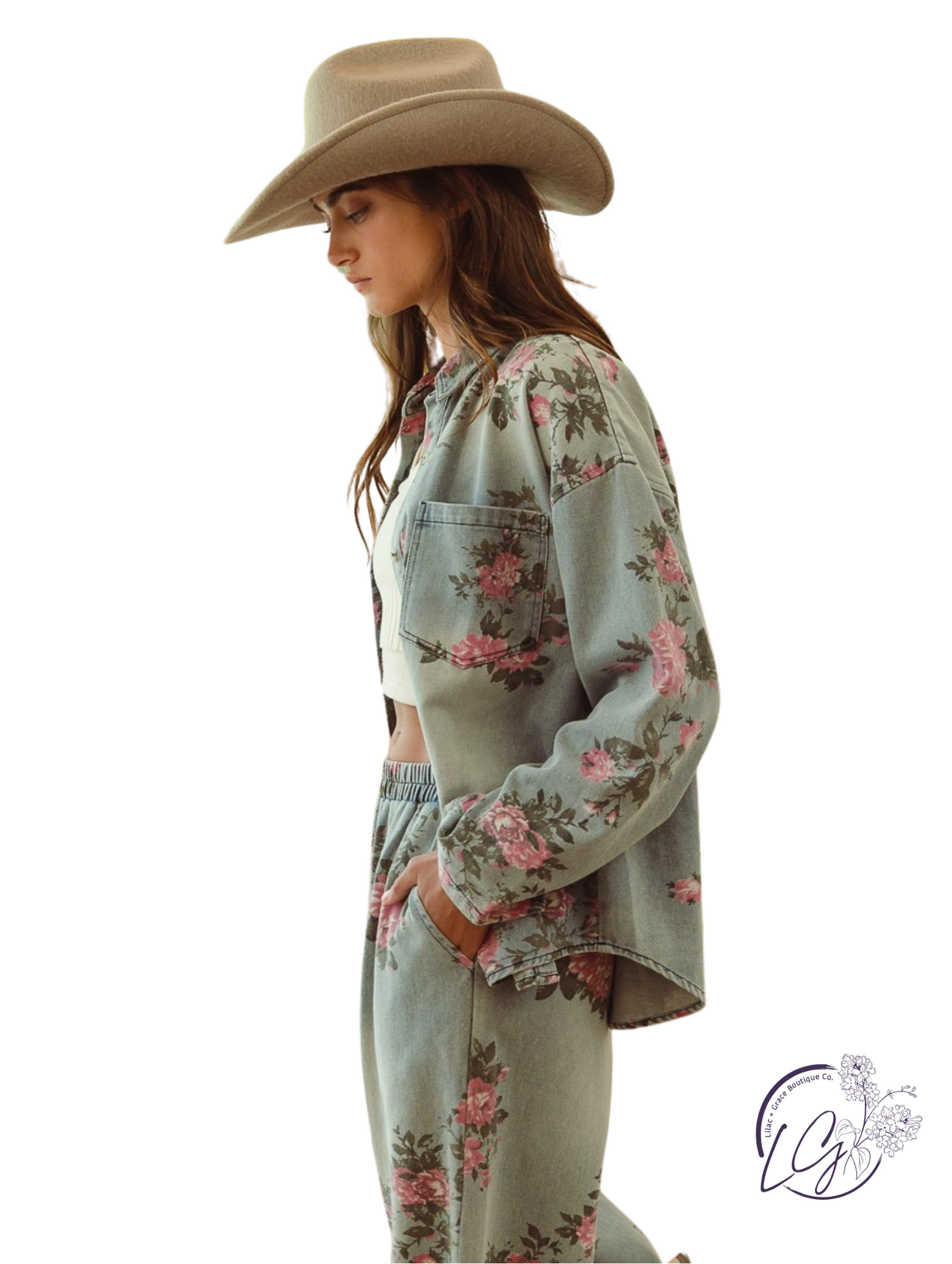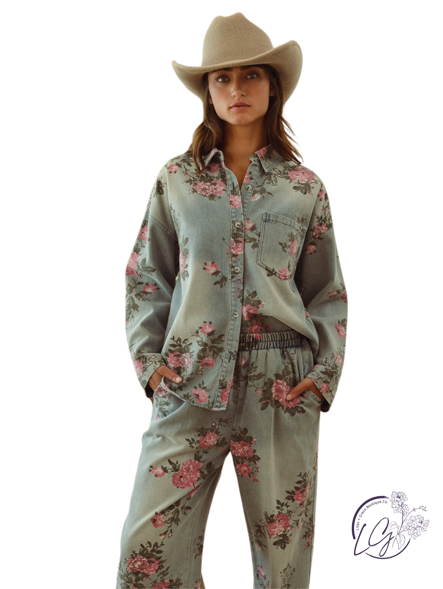 Make a bold statement with the Rusted Fence Lines Shirt, featuring a striking flower print on classic denim. This button-up combines rugged texture with vibrant floral design, perfect for those who dare to stand out. Its versatile style pairs effortlessly with your favorite jeans or skirts, adding an edgy yet fresh vibe to any outfit. Embrace fearless fashion with this unique shirt that turns everyday wear into an eye-catching look.