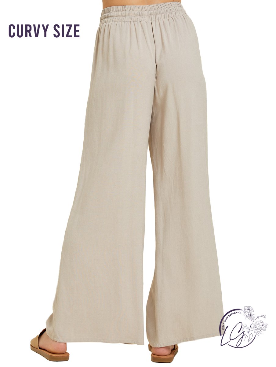 The "Curvy Airy Elegance Wide-Leg Trousers" embody a perfect blend of style and comfort, making them a must-have addition to your wardrobe. Crafted from a soft, lightweight linen-like fabric, these pants offer a luxurious feel reminiscent of linen while ensuring breathability and ease of wear.