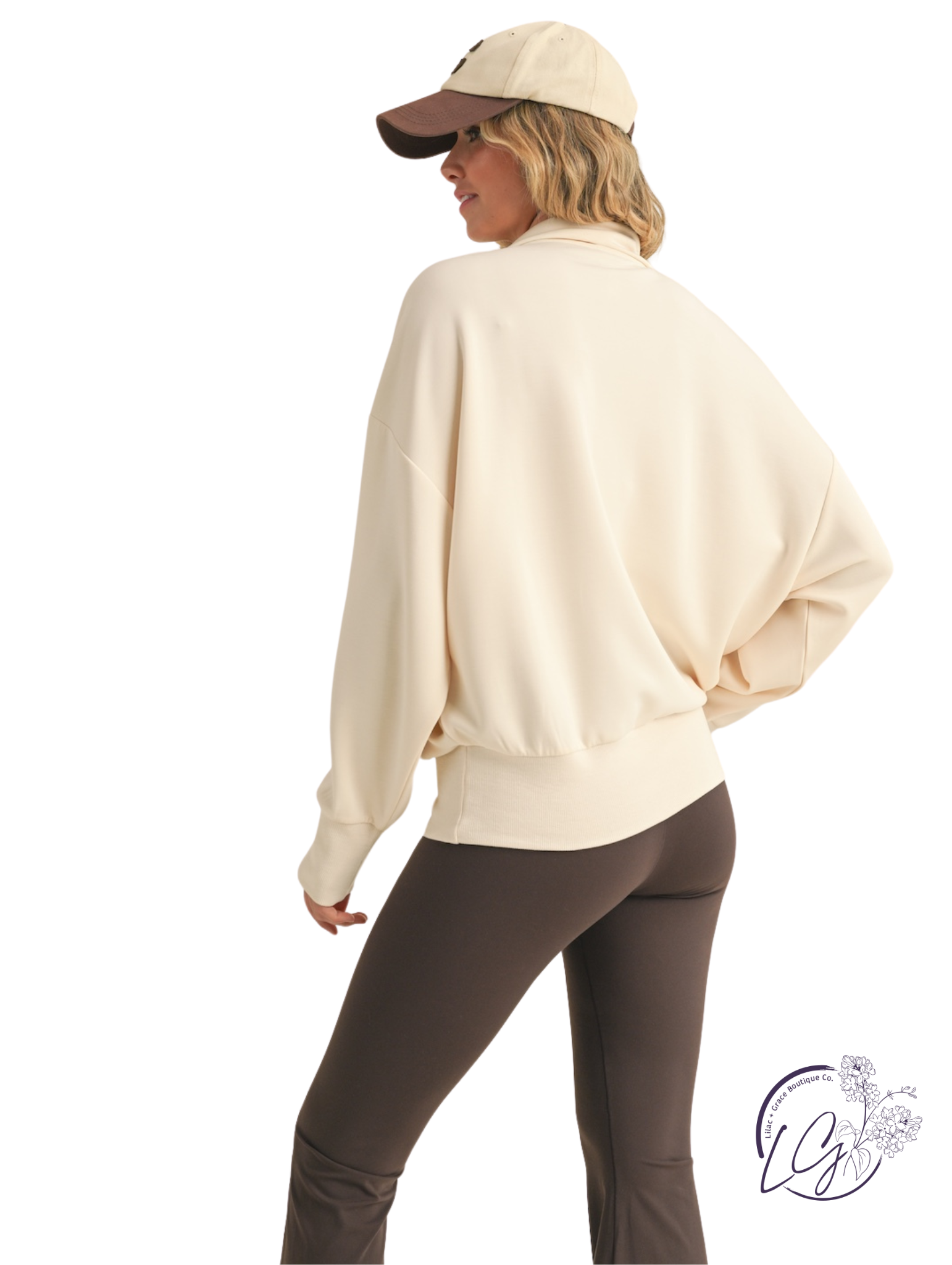 This oversized half-zip sweatshirt is crafted from ultra-soft air scuba fabric and finished with a subtle sand wash for a smooth, lived-in feel. Designed with a relaxed silhouette, it features a high collar, half-zip front, and dropped shoulders for a cozy, modern fit.