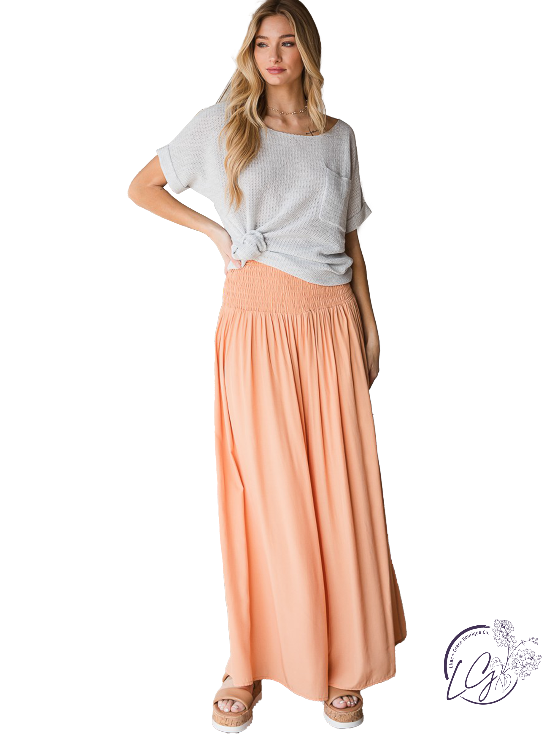 The Smocked Elegance Wide-Leg Trousers are a sophisticated and stylish wardrobe staple that effortlessly combines comfort with refined charm. Crafted with attention to detail, these trousers feature a smocked waistband that offers a flattering and comfortable fit. The smocked design adds an element of elegance and texture, while also providing a stretchy and adjustable waistline. The wide-leg silhouette creates a flowing and graceful drape, adding a touch of sophistication to any outfit. Made from high-quality materials, these trousers offer a luxurious feel against the skin. Whether dressed up with a blouse and heels for a formal event or paired with a casual top and sandals for a more relaxed occasion, the Smocked Elegance Wide-Leg Trousers exude timeless elegance and versatile style. They are perfect for those seeking a balance of comfort and sophistication in their wardrobe choices.