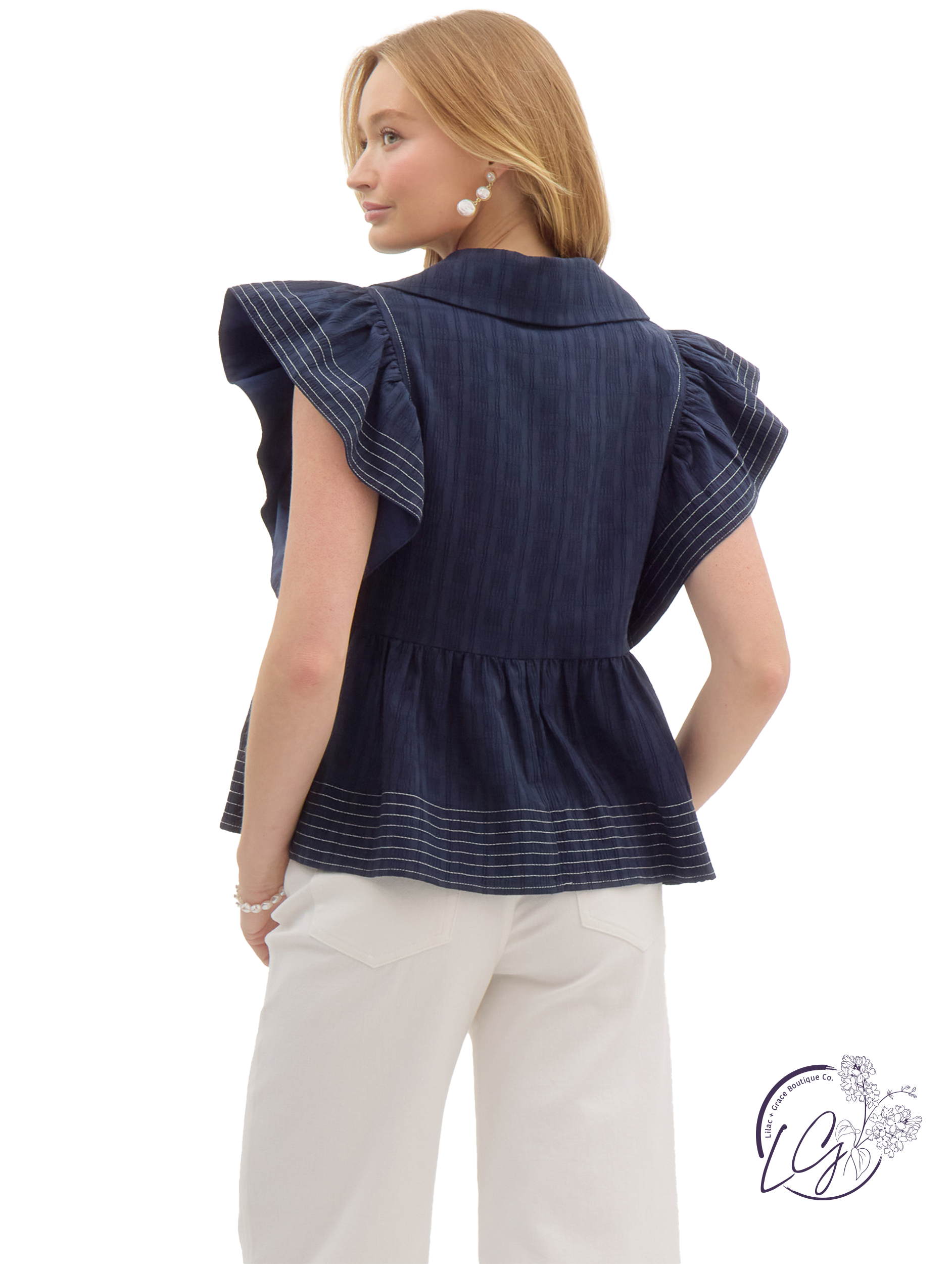 Pulse in Shade Top features a soft, feminine silhouette with layered ruffle sleeves and a relaxed fit. Designed with a round neckline and lightweight woven fabric, it’s perfect for warm-weather days or easy layering. Finished with subtle texture for added depth.