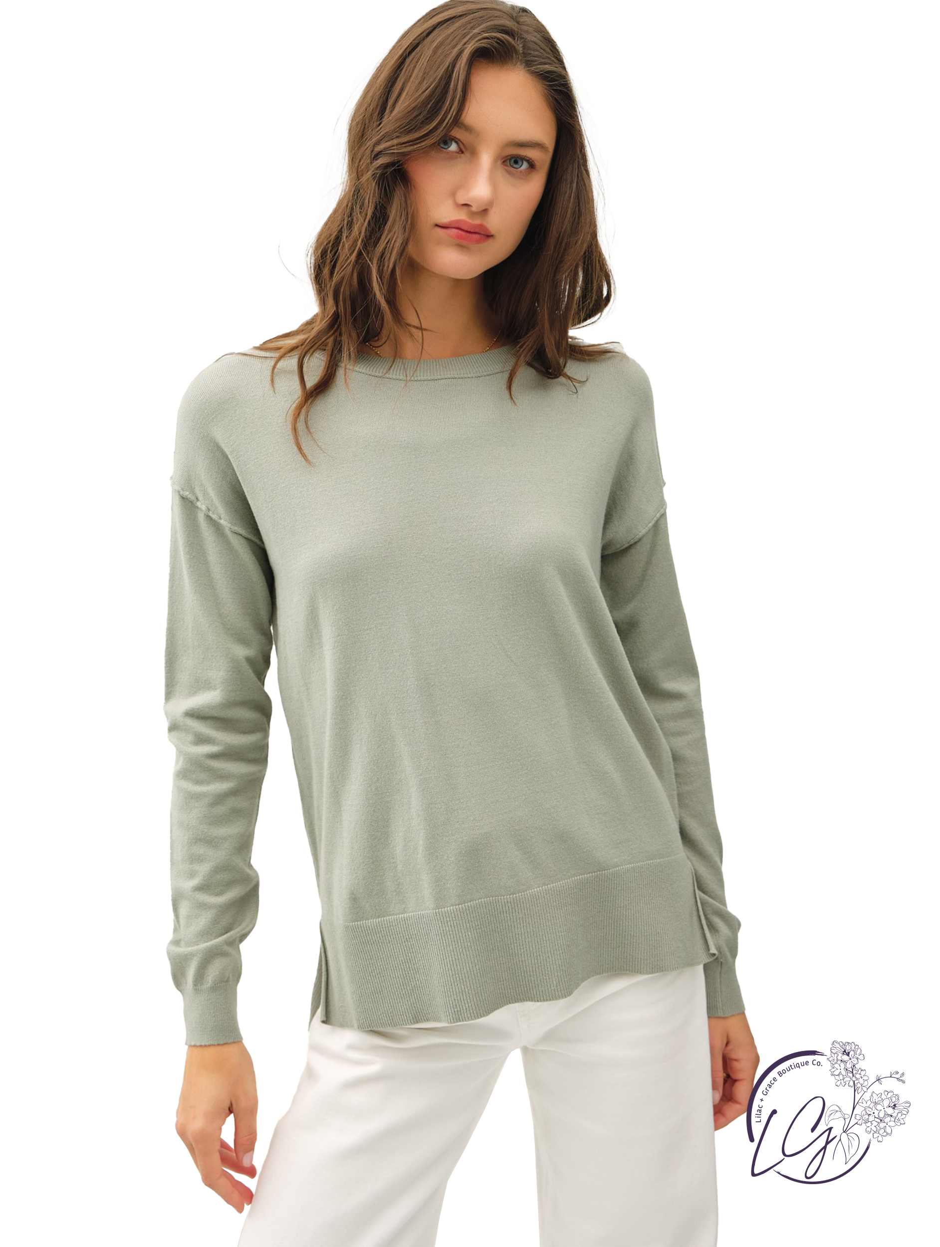 Indulge in comfort and style with the Sprinkle Of Joy Basic Sweater. This lightweight, oversized sweater features a round neckline, drop shoulder design, and ribbed ends for a cozy fit. The side slits and raw seam details add a touch of uniqueness to this versatile piece. Elevate your wardrobe with this must-have staple.