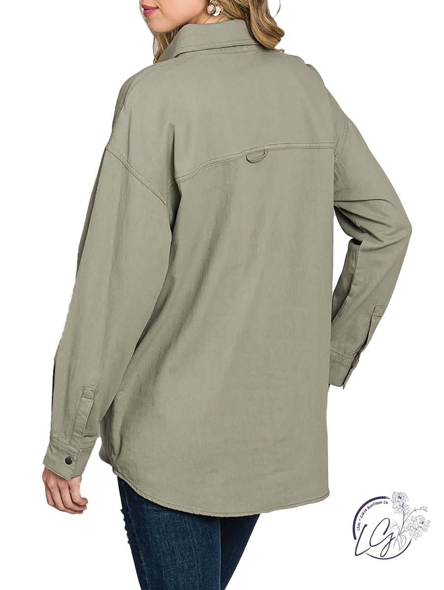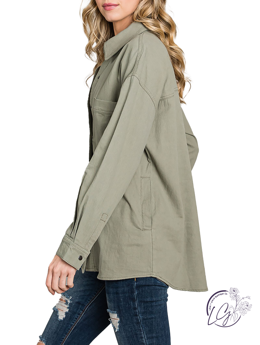 Boxy Cotton Button Down with Sleeve Cuffs. Front and Side Pockets to wear Comfortably.