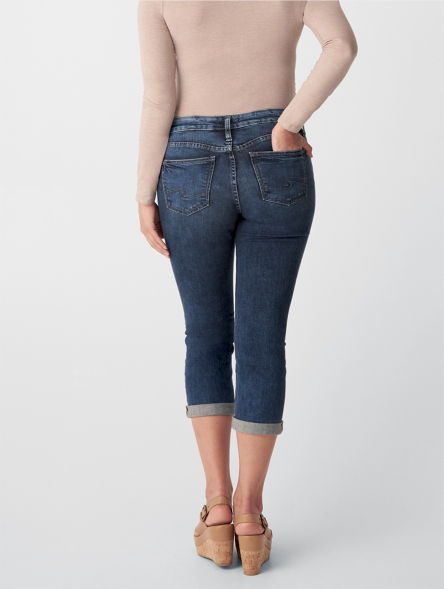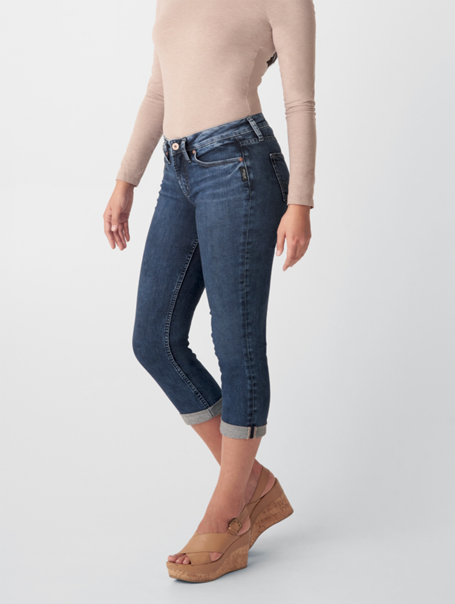 There's a reason why Suki is our best-selling curvy fit. To start, it's designed with our proprietary contoured waistband that contours right where you need it (and not where you don’t). The result is an ultra-flattering fit that never gaps or creates muffin top. It also features a modern mid rise at 9.25" to flatter a curvier backside and create a subtle butt-lifting effect. Plus, there’s added ease in the hip and thigh to perfectly hug your curves. Basically, it's everything your curves have been looking for. This pair's finished with an essential dark indigo wash and cuffed hem.