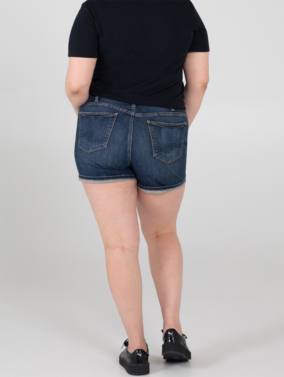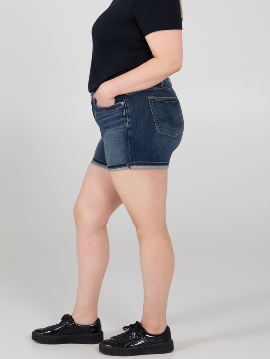 There's a reason why Suki is our best-selling curvy fit. To start, it's designed with our proprietary contoured waistband that contours right where you need it (and not where you don’t). The result is an ultra-flattering fit that never gaps or creates muffin top. It also features a modern mid rise to flatter a curvier backside and create a subtle butt-lifting effect. This short is finished with a dark indigo wash, cuffed hem and double stacked waistband for a touch of retro appeal.