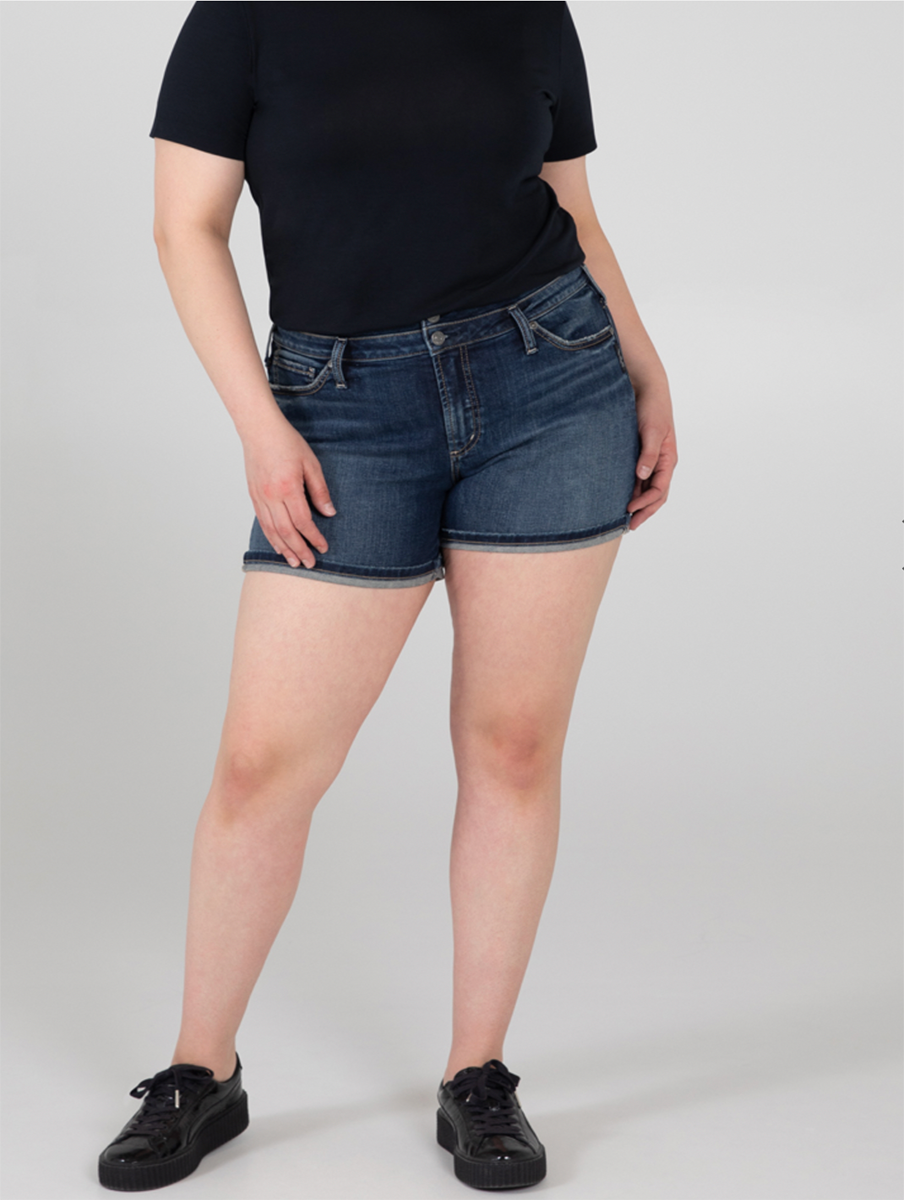 Curvy Suki Mid Rise Double Button Shorts by Silver Jeans