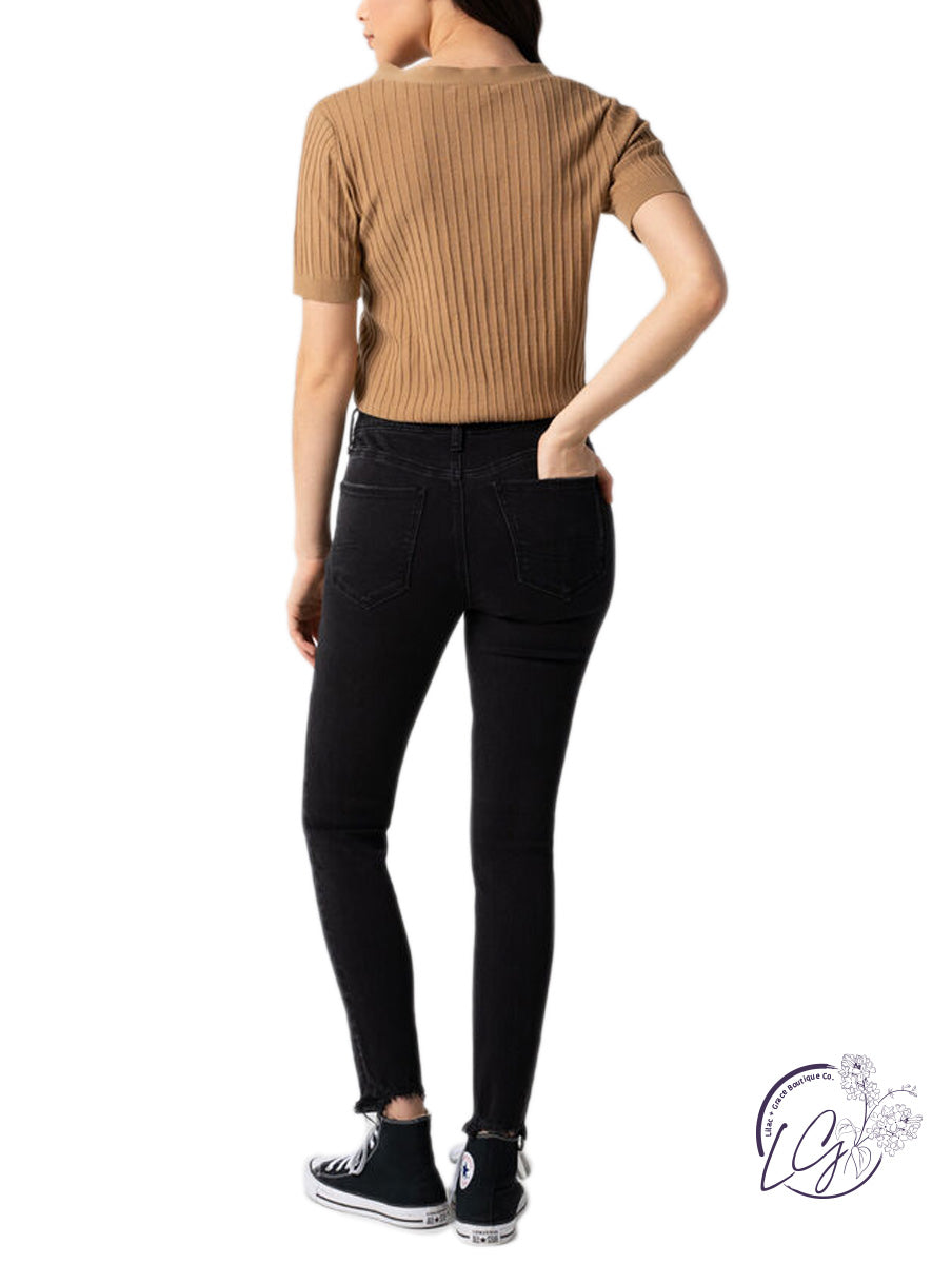 Environmentally conscious through every step of the manufacturing process, this Suki Skinny is one of the most eco-friendly yet. To start, this pair uses less water and less chemicals in the wash process, resulting in a green EIM score. Additionally, the chemicals that we do use are 100% organic chemicals. It's also designed in an eco-friendly high stretch fabric featuring REPREVE® recycled polyester made from recycled content, including plastic bottles (but amazingly, is still as soft and comfortable as ever). Basically, this jean has less impact on you, our workers and the environment, making it one you can really feel good about wearing. Suki's our best-selling curvy fit, designed with our proprietary contoured waistband that contours right where you need it (and not where you don’t). The result is an ultra-flattering fit that never gaps or creates muffin top. It also features a modern mid rise at 9.25" to flatter a curvier backside and create a subtle butt-lifting effect. Plus, there’s added ease in the hip and thigh to perfectly hug your curves. This pair's finished with an essential black wash and chewed hem.