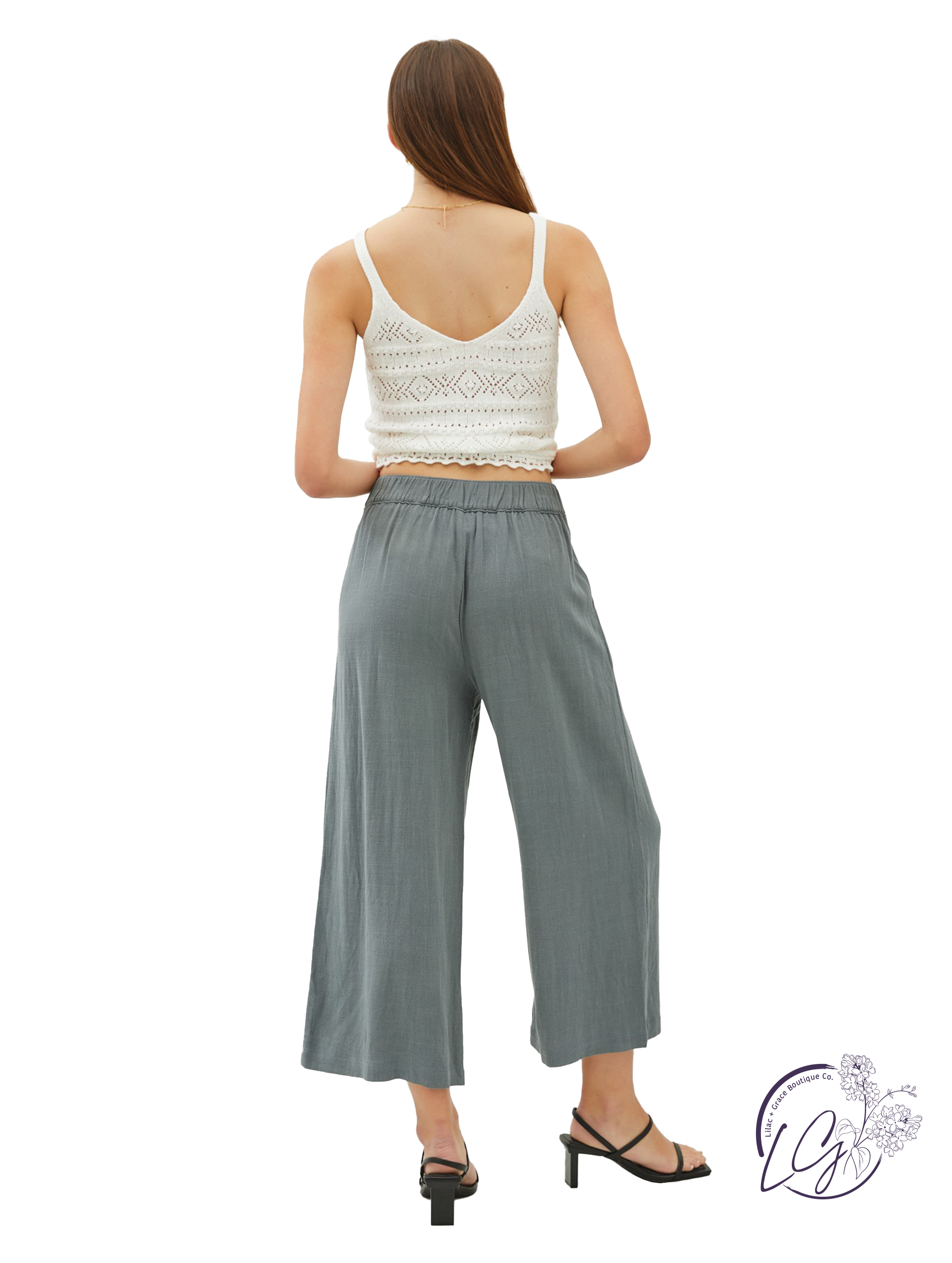 Experience the ultimate comfort and style with our Sunlit Stroll Trousers! Made from flowy, soft linen, these trousers feature pleating and a wide leg design for a chic look. With an elastic waist, convenient pockets, and a crop length, these pants are perfect for any occasion. Embrace the versatility and comfort of these must-have trousers now!