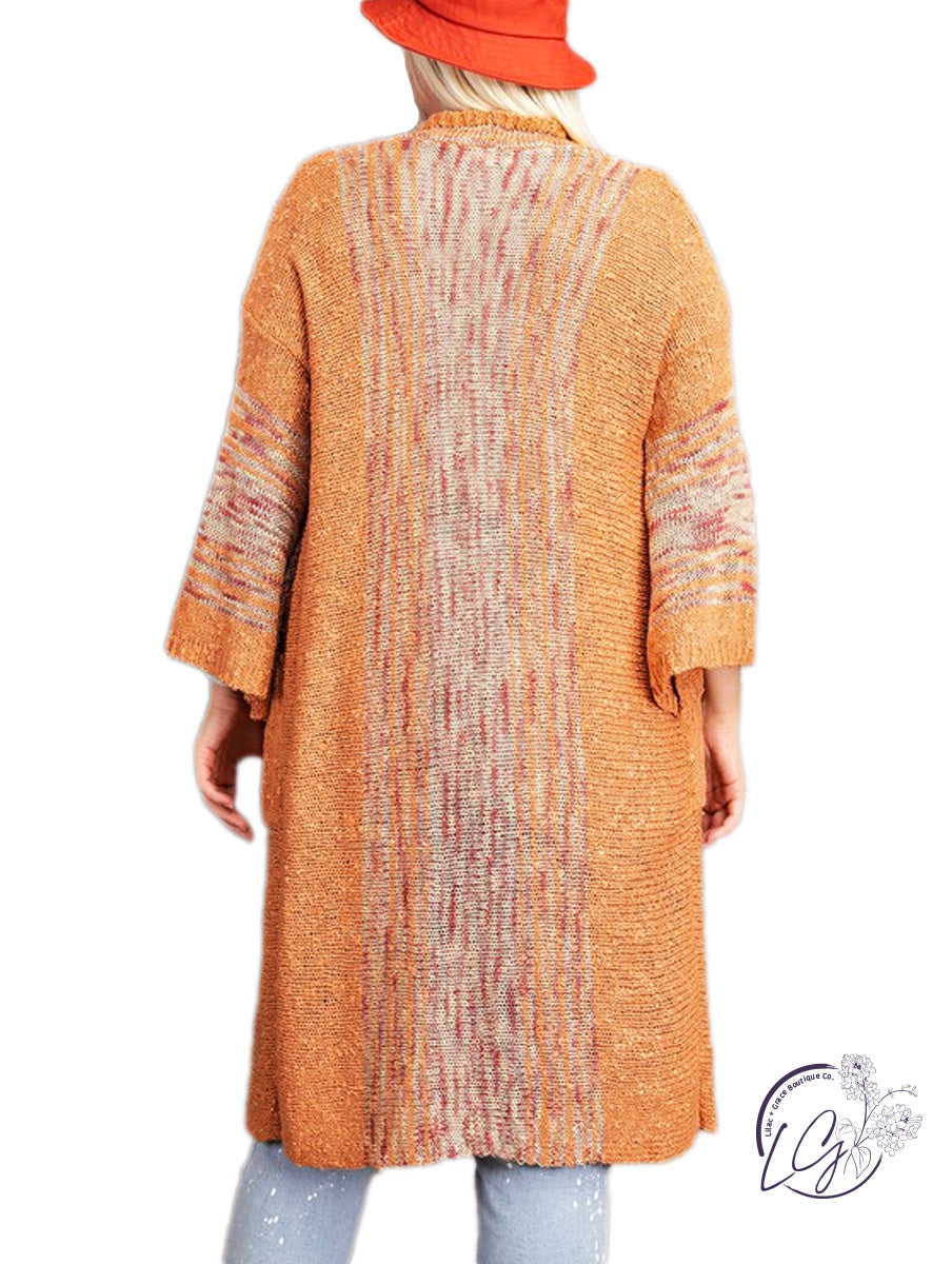 Wide sleeve Boho Sweater knit open cardigan with pockets.