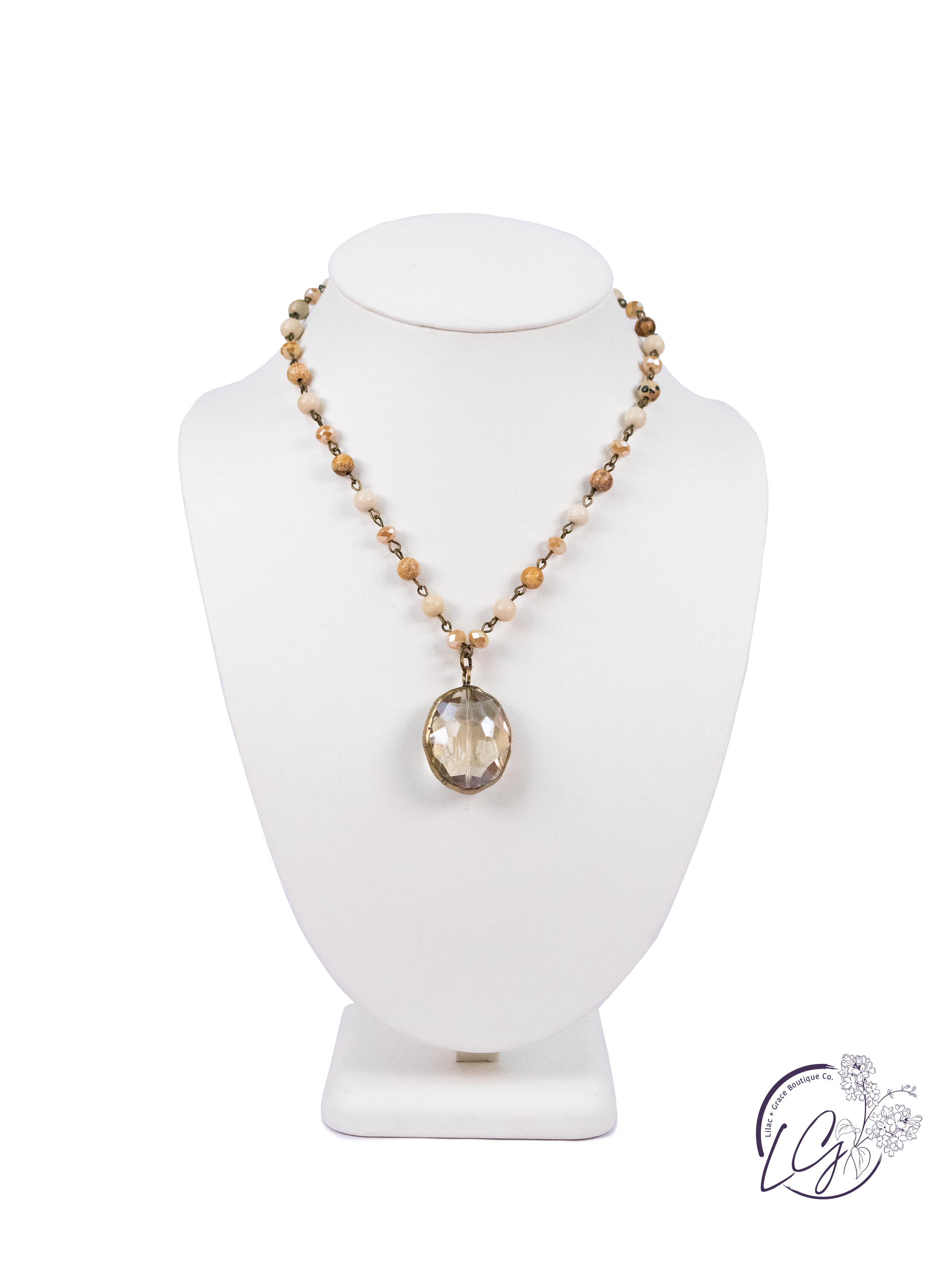 Intensify your outfit with our Sweet & Simple Large Crystal Necklace. Its stunning large crystal pendant is complemented by delicate multi beads, giving it a vintage feel. Make a statement and turn heads with this elegant piece.