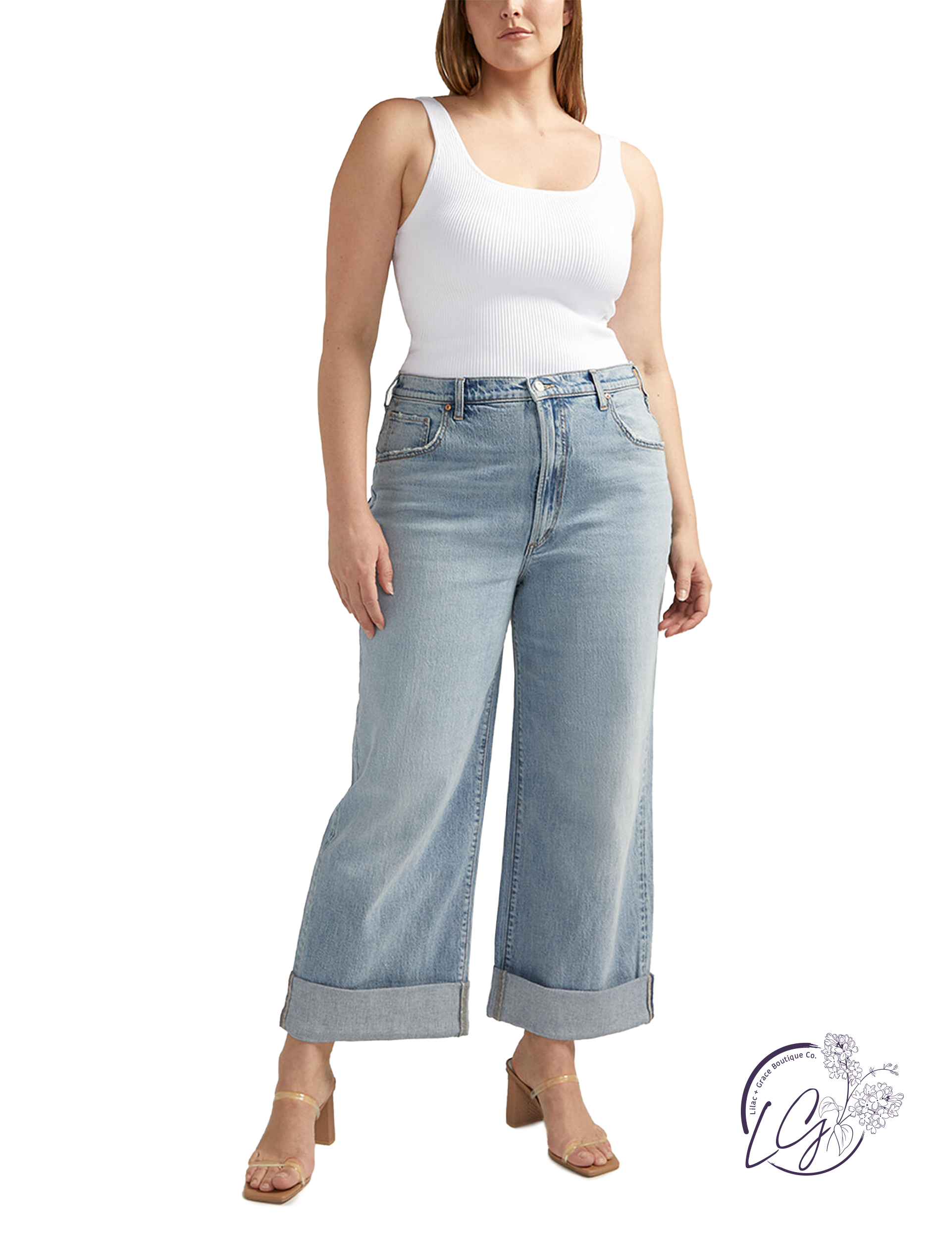 Teagan Baggy Mid Rise Wide Leg Cropped Jeans by Silver Jeans