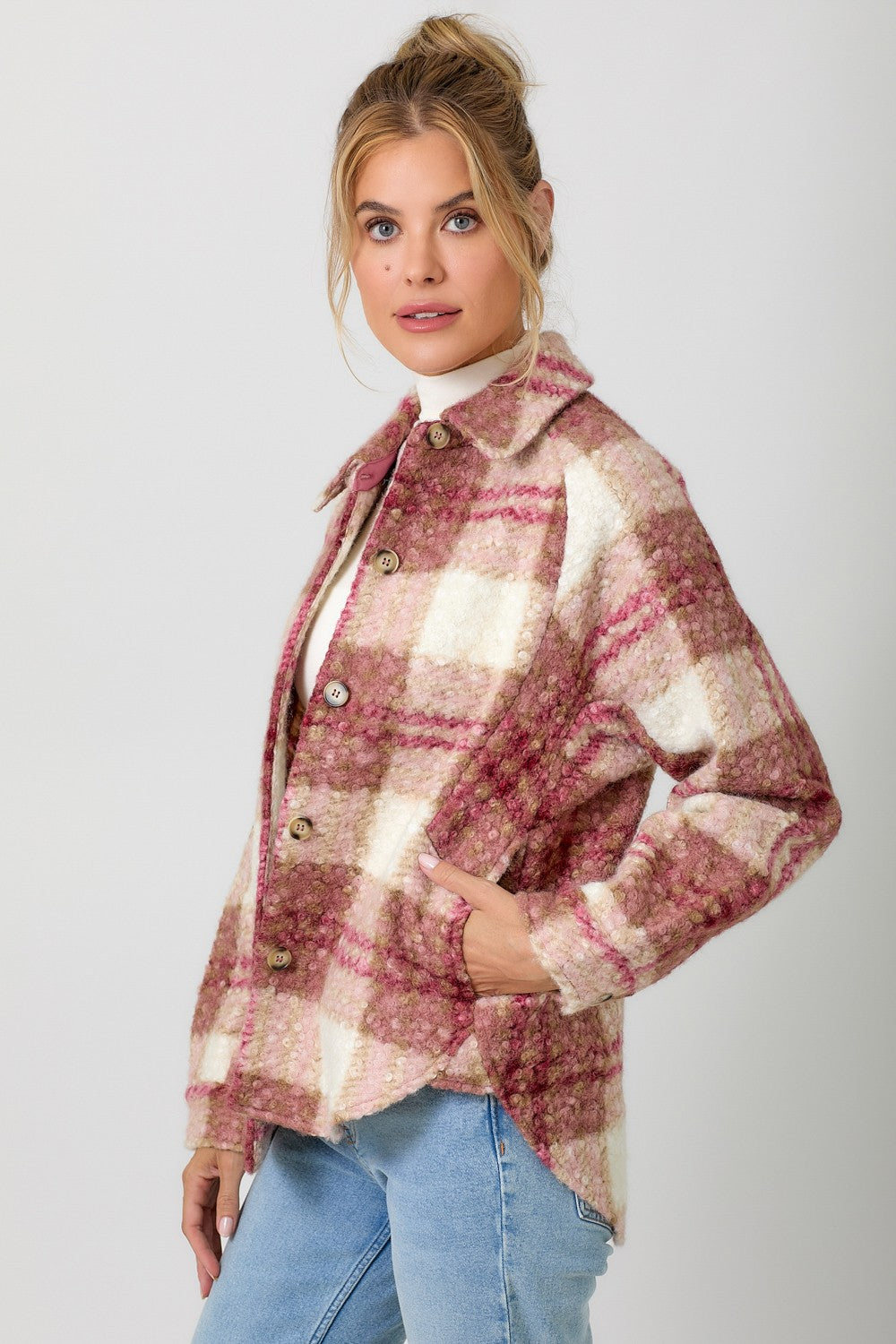 Cozy up in timeless style with The Hearth Shacket — your go-to layer for crisp mornings and fireside evenings. Crafted in a classic plaid weave, this button-down shacket blends the softness of your favorite flannel with the structure of a light jacket. The relaxed, easy fit makes it perfect for layering over knits or tees, while the chest pockets and button cuffs add a touch of utility charm. Whether you're heading to the mountains or just sipping coffee on a chilly day, this piece brings comfort and character wherever you go.
