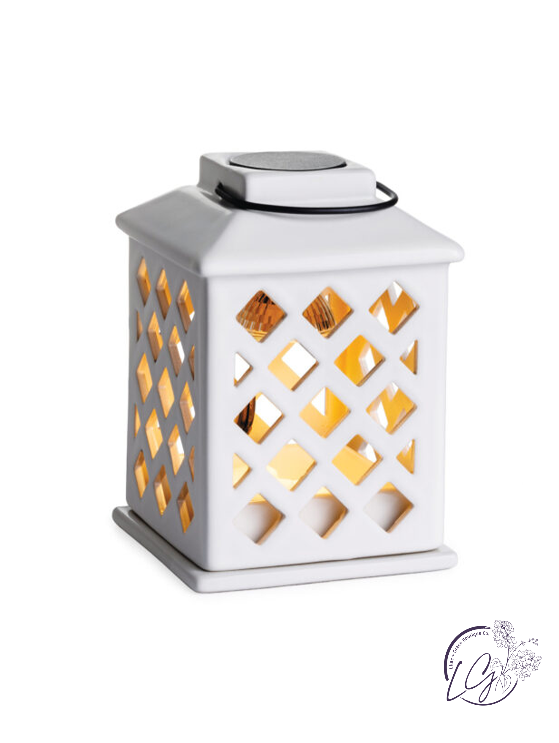 • DESIGN: Add beautiful fragrance to your room with the Shutter Lantern Canopy Illumination Warmer. The stunning lantern features a shutter motif and rustic rope handle. A halogen bulb warms wax melts in the warming dish from the top down releasing fragrance into your home.