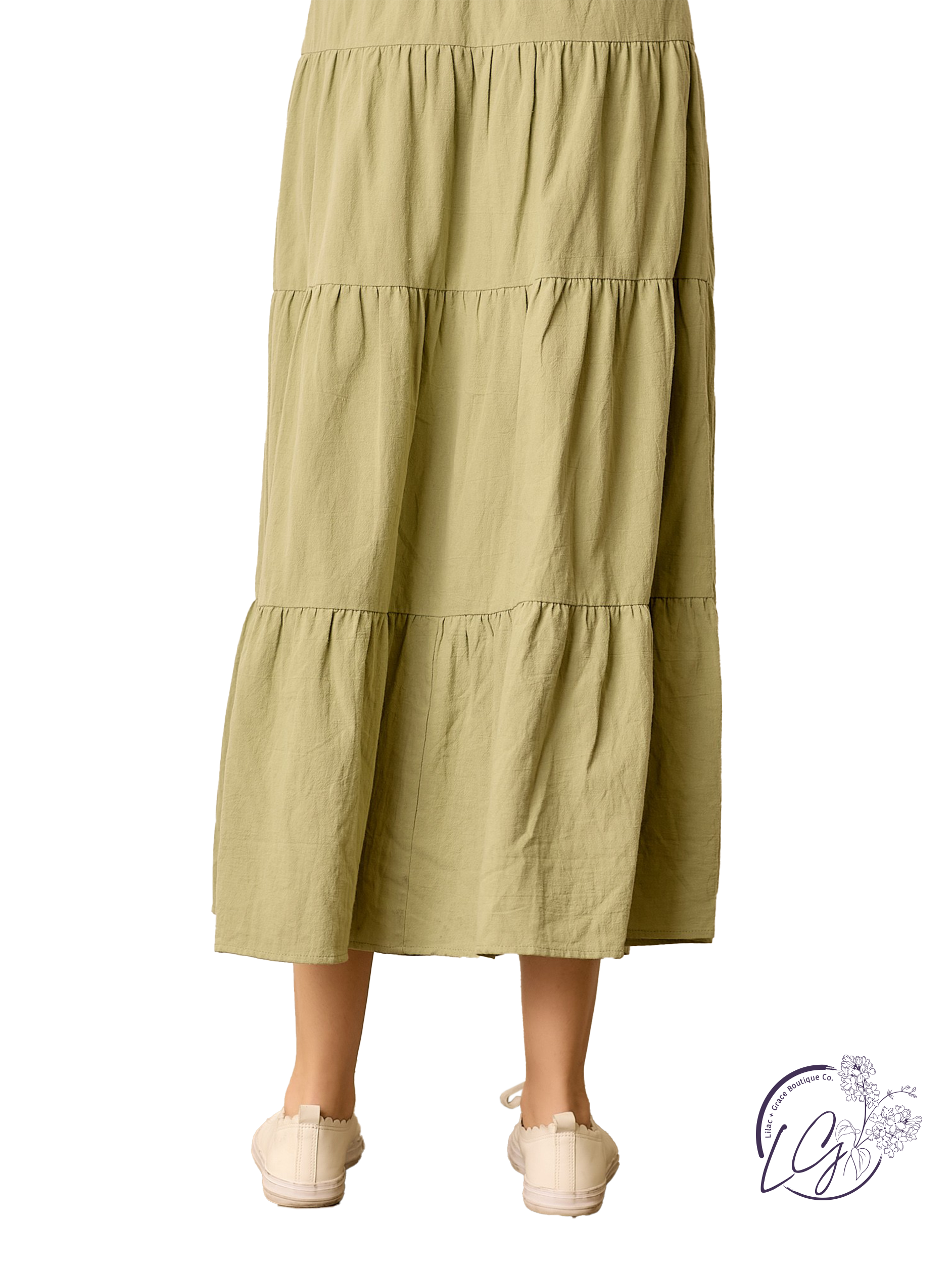 This solid button-up maxi skirt is a flowy staple made for movement. Featuring a tiered design that adds subtle volume, it’s finished with a full button-front for an added touch of detail. The maxi length offers a graceful silhouette, perfect for dressing up or down. Pair it with a tucked-in blouse and sandals for an easygoing yet polished look.