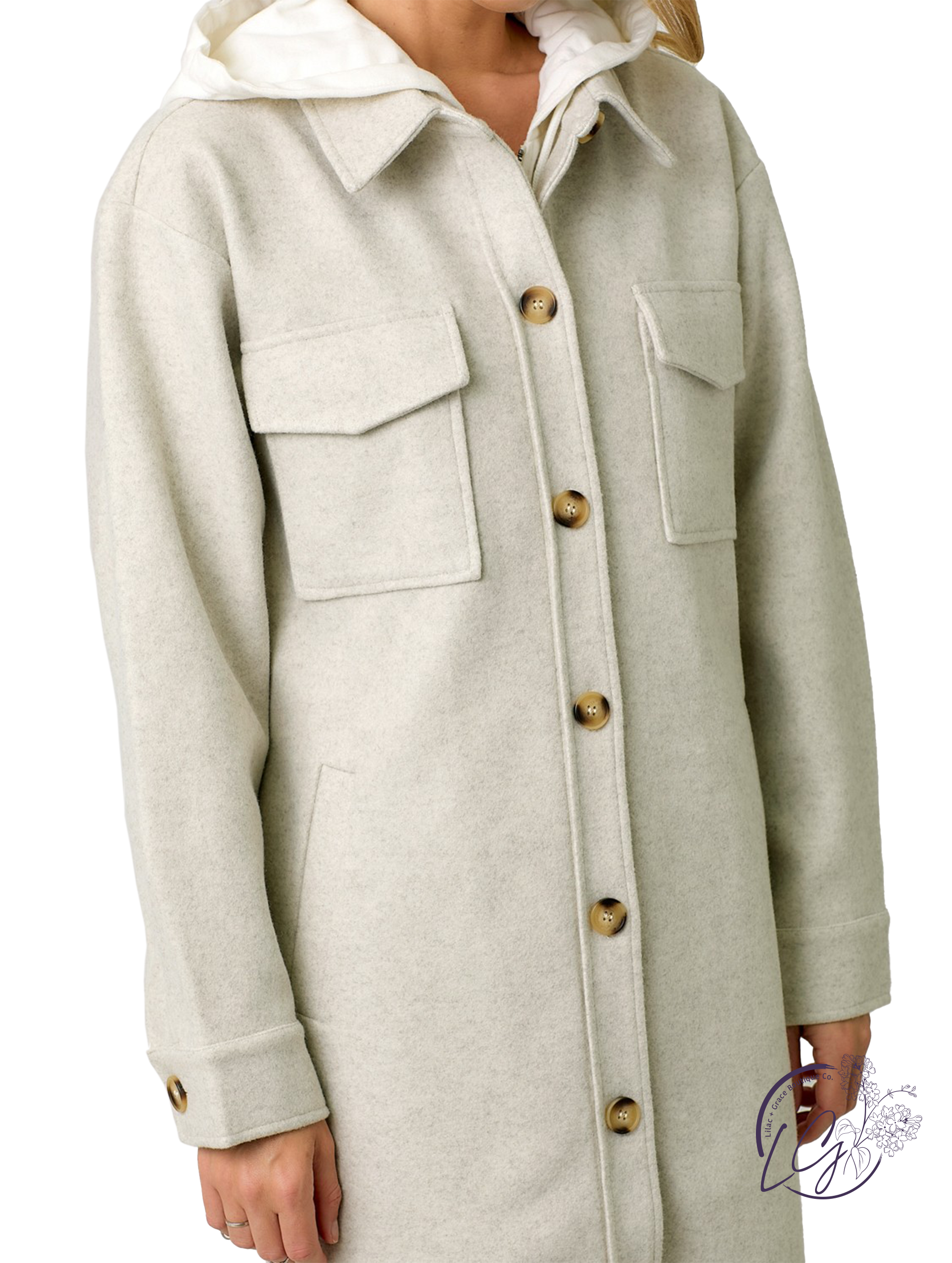 Stay cozy and stylish with the Urban Chill Long Solid Coat! This knee-length coat features a versatile attached hoodie layer with zipper closure and a sophisticated button down outer layer. With bust and side pockets for added practicality, this coat is the perfect combination of fashion and function.