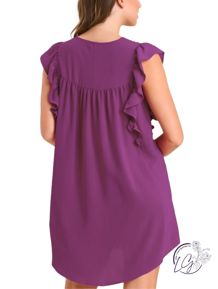 The focal point of this dress is undoubtedly the posh ruffle sleeves, which exude an air of femininity and refinement. Cascading gracefully from the shoulders, the ruffles add a touch of drama and movement, creating a visual statement that is both chic and elegant.