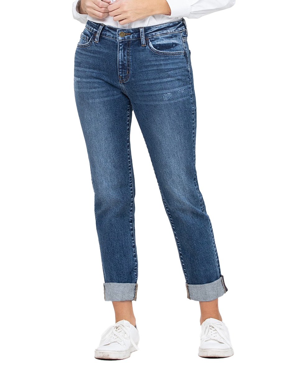 Comfort Stretch Denim. Cuffed Hem Style, Boyfriend Jean