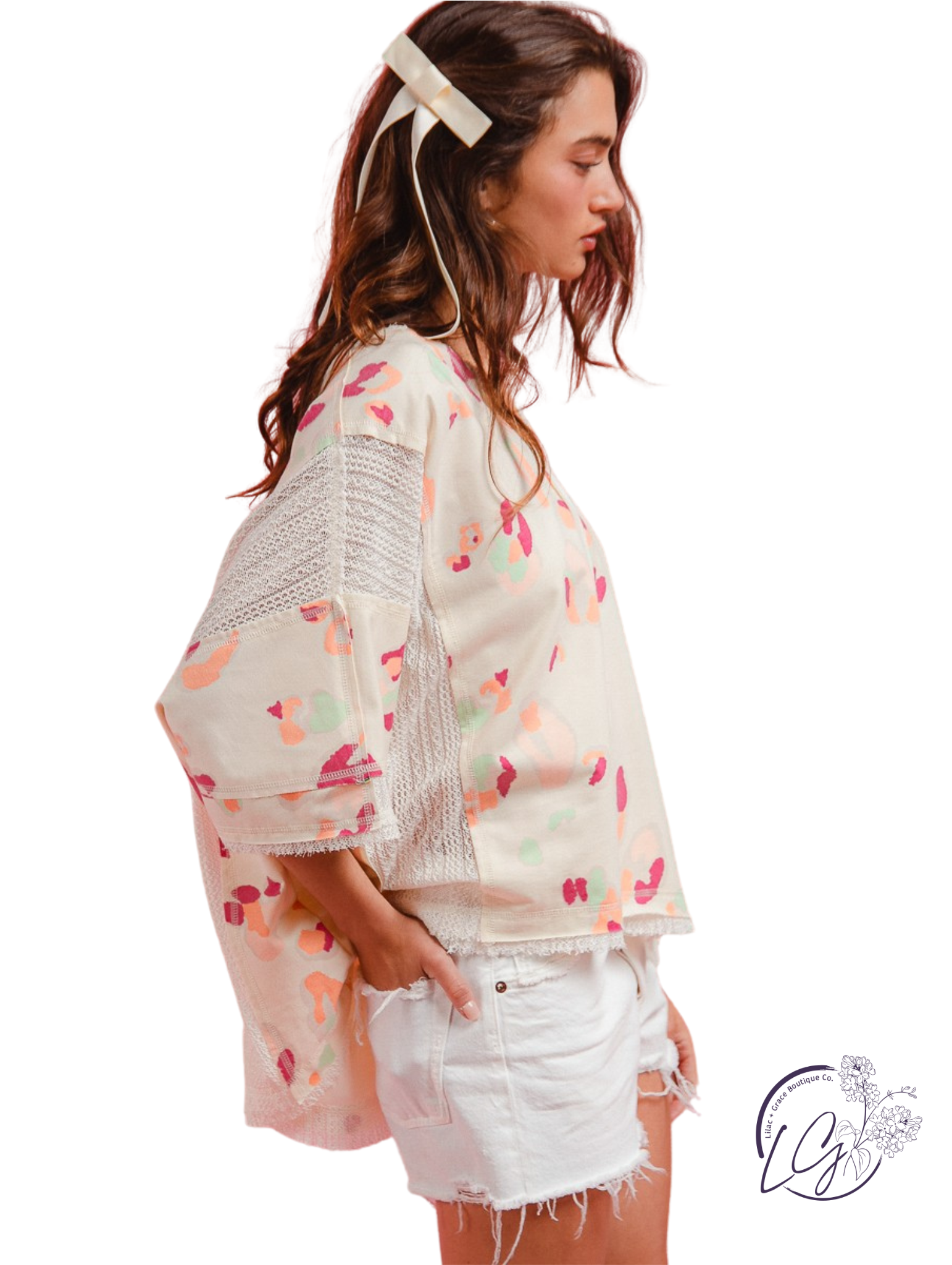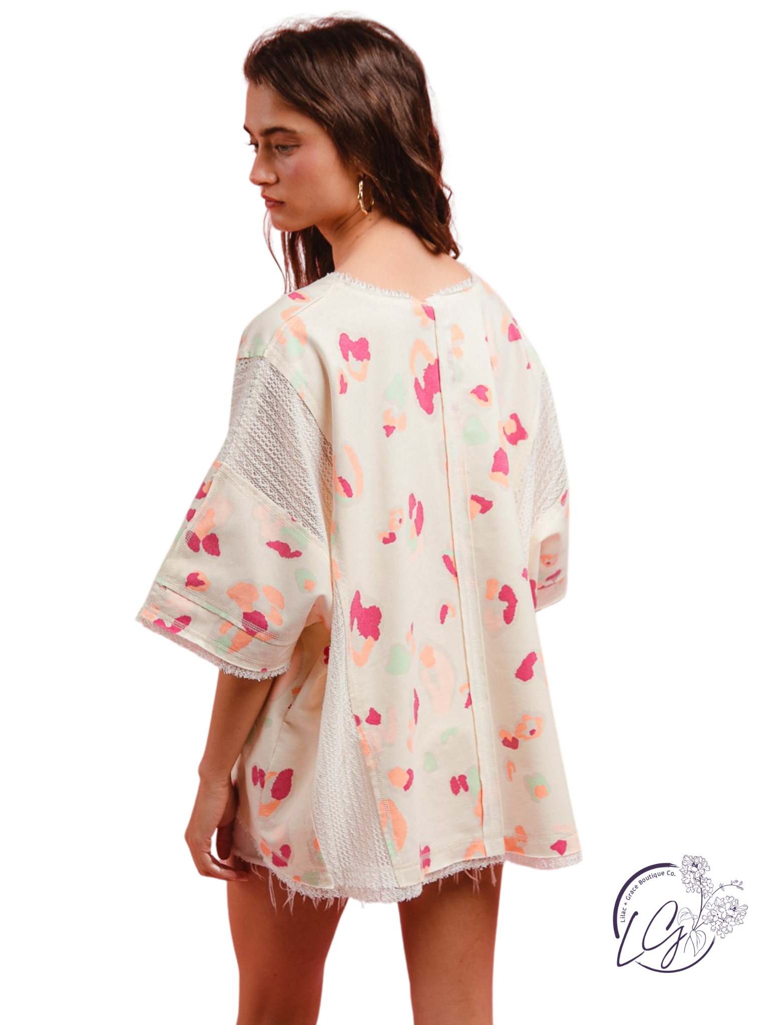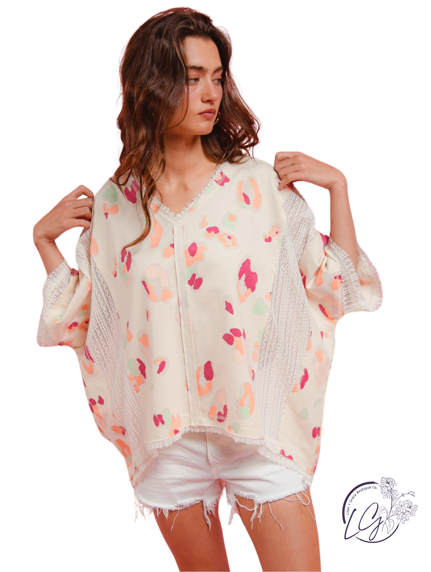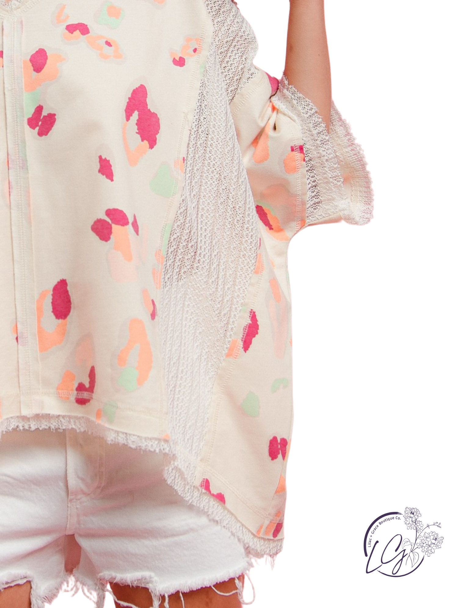 Make a bold statement with the Velvet Smoke Leopard Top, featuring a daring blend of fierce leopard print and delicate crochet lace. This mix-and-match design adds an edgy yet feminine touch to your wardrobe, perfect for standing out at any event. Embrace your wild side with a top that combines texture and pattern in a fearless, fashion-forward way.\