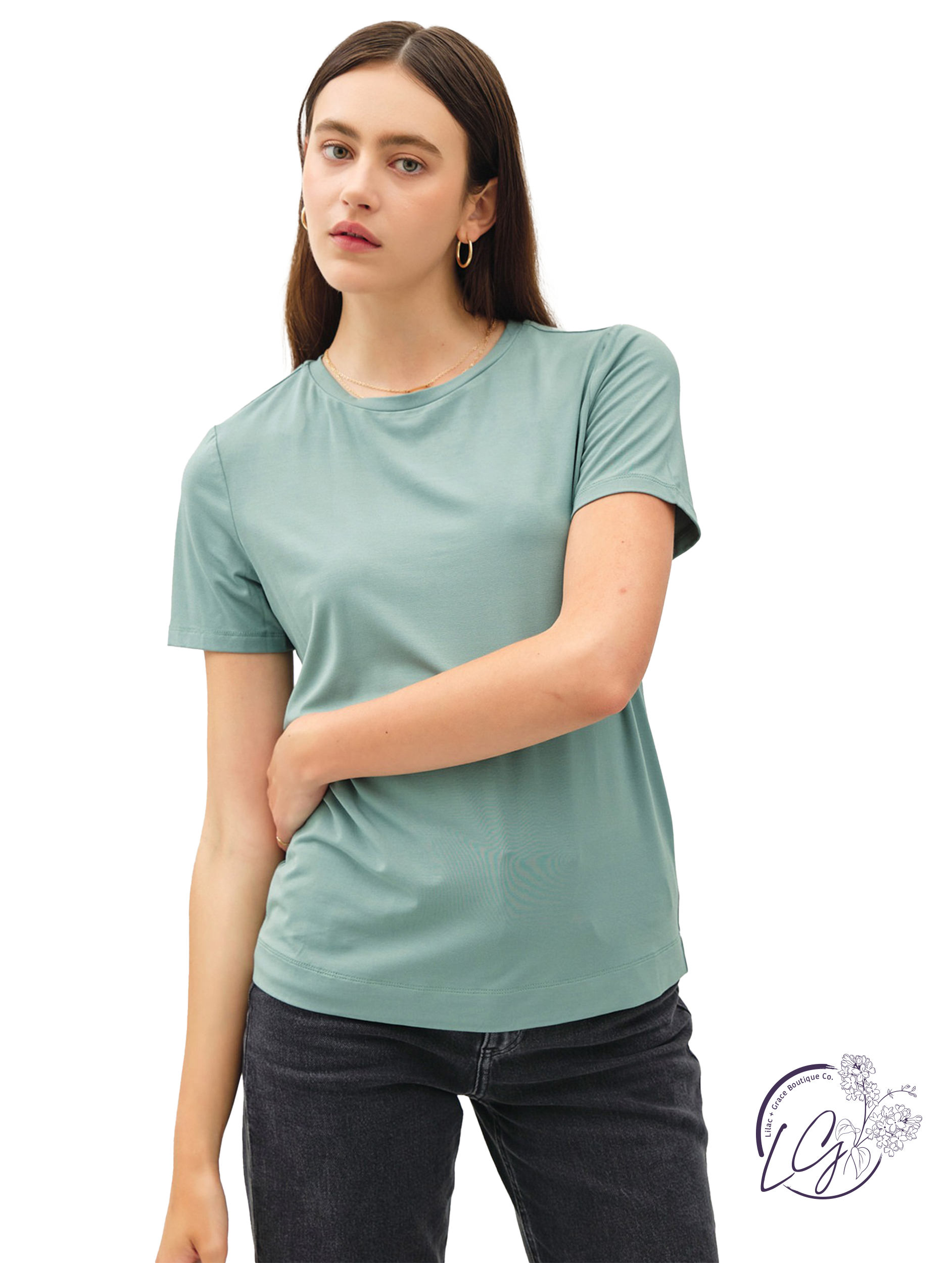 The Versatile Basic Top is a must-have piece for any wardrobe, offering both style and comfort. Made from a blend of bamboo, modal, and spandex, this top provides a soft and luxurious feel against the skin. The round neckline and short sleeves add a classic touch, while the versatile design allows for easy pairing with a variety of outfits. Whether dressed up with tailored pants or worn casually with jeans, the Versatile Basic Top is a timeless essential that can be worn for any occasion.