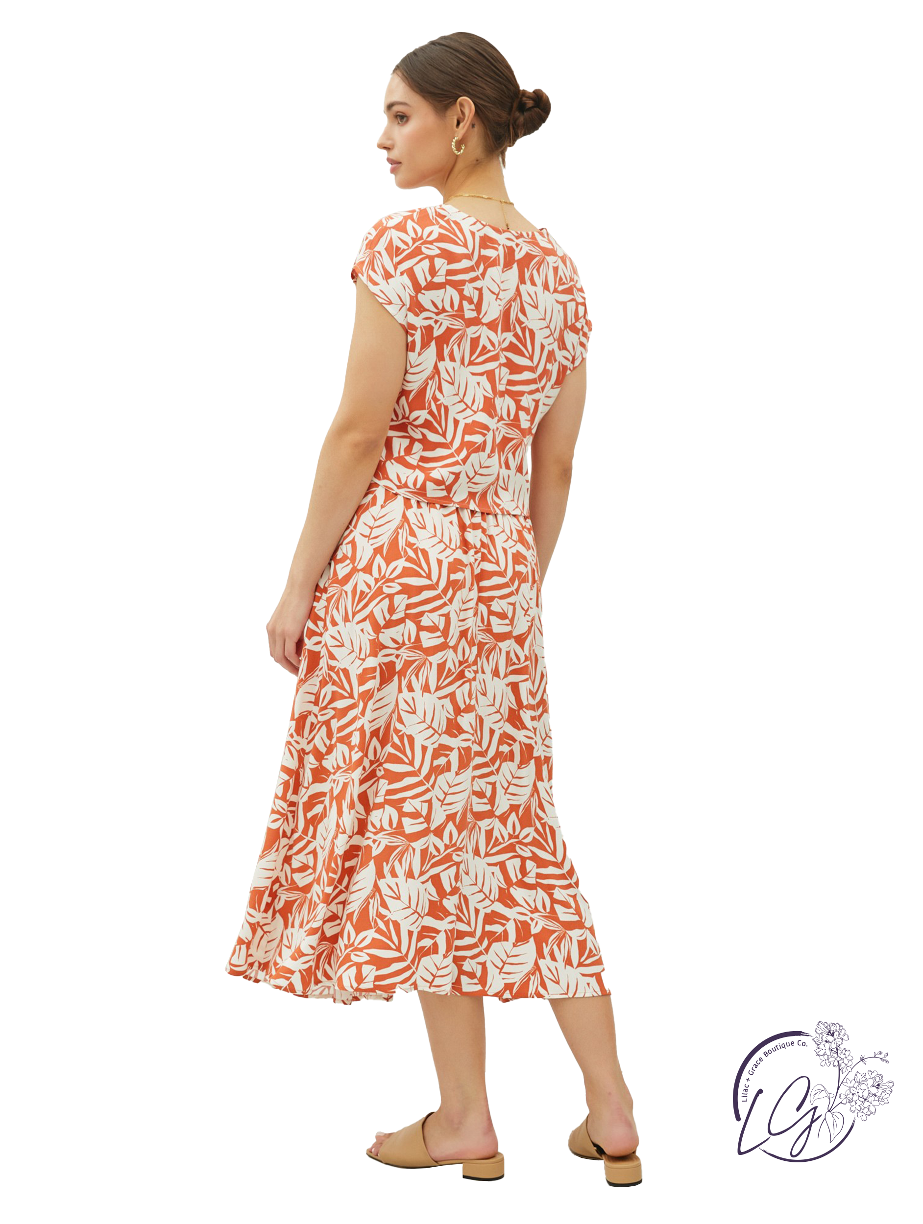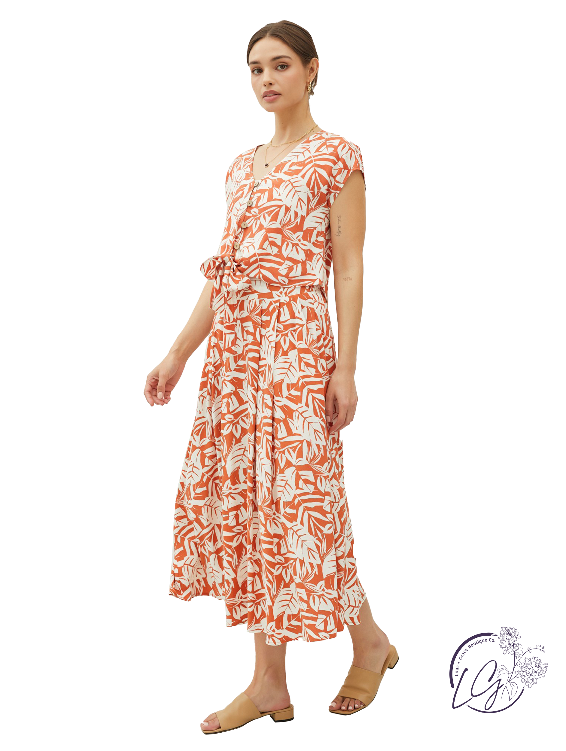 The Vine and Knot Button Down is a stunning cropped floral print top that perfectly combines feminine elegance with casual charm. Featuring a flattering V-neckline and short sleeves, this piece is adorned with wooden buttons for a touch of rustic detail. The front tie adds a playful and flattering fit, making it ideal for pairing with high-waisted jeans or skirts. Its lightweight fabric and intricate floral pattern evoke a breezy, effortless vibe, perfect for day-to-night transitions. Whether you're out for brunch or an evening stroll, the Vine and Knot Button Down will elevate your style with its unique, nature-inspired design.
